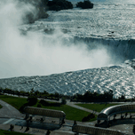 "Niagara Falls with powerful water mist and surrounding park." in a framed print.