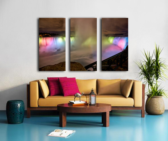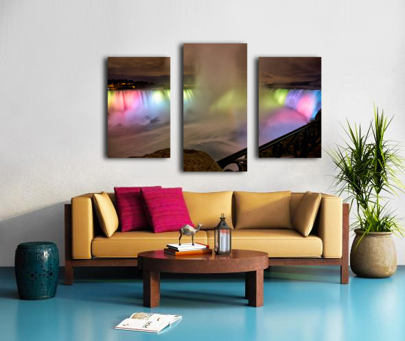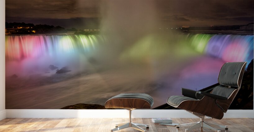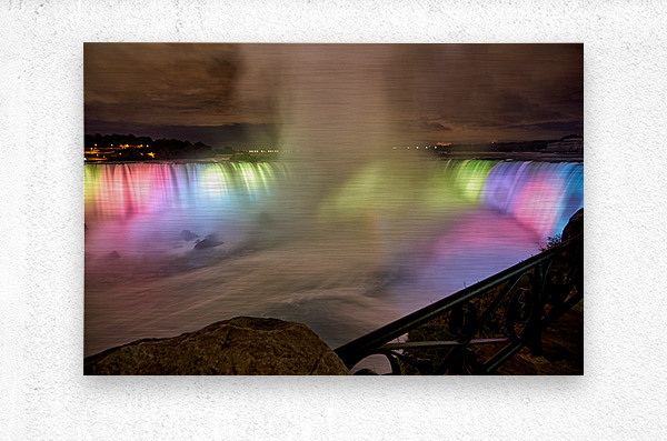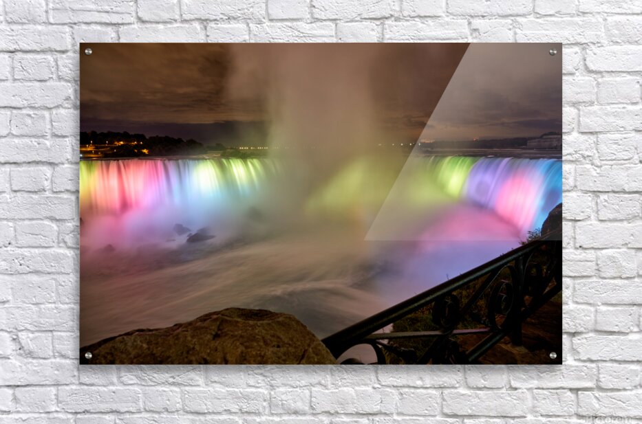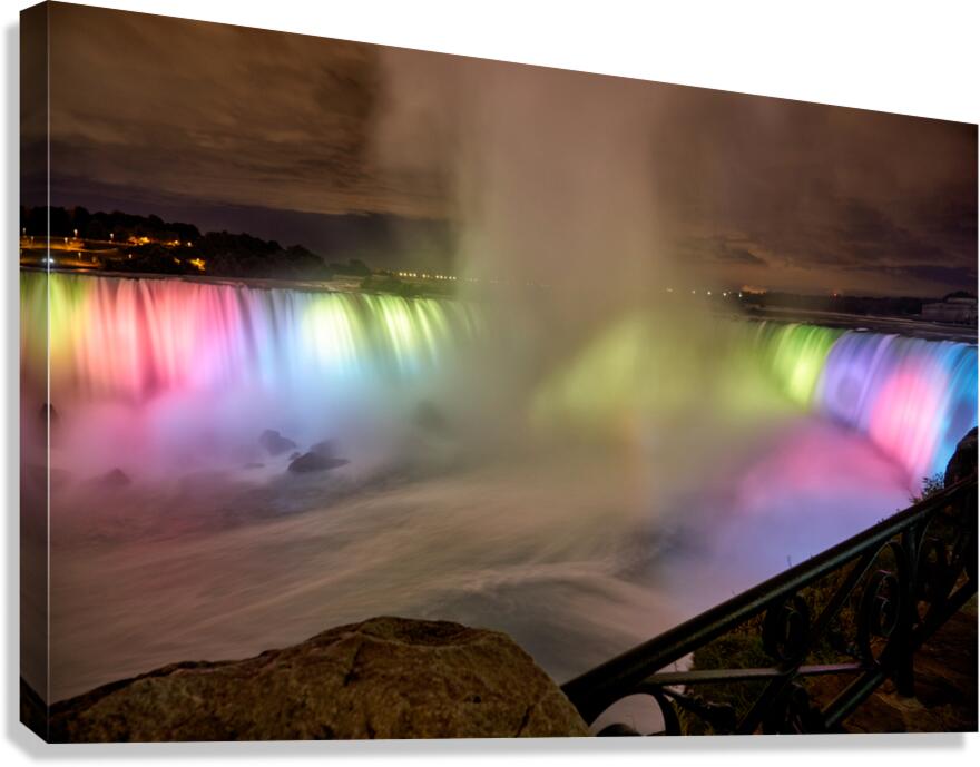 ABOUT THIS ARTWORK: NIAGARA FALLS ILLUMINATED AT NIGHT WITH COLORFUL LIGHTS.
