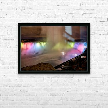 Niagara Falls illuminated at night with colorful lights. Frame print