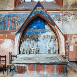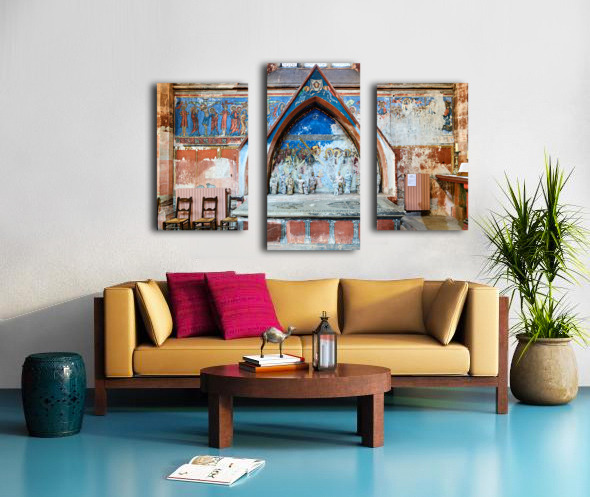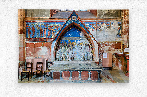 ABOUT THIS ARTWORK: OLD WALL ART AND STONE ALTAR INSIDE SAINT PIERRE LE JEUNE CHURCH