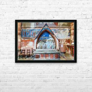 Old wall art and stone altar inside Saint Pierre le Jeune church Picture Frame Printing