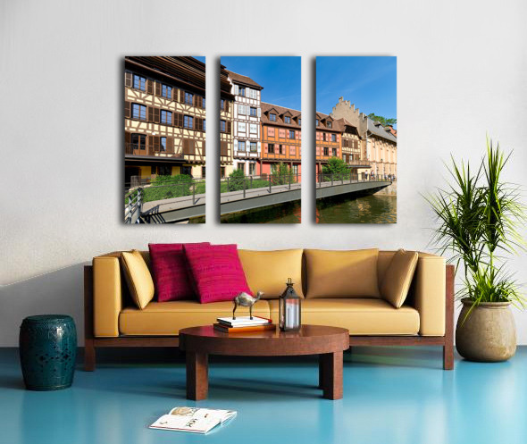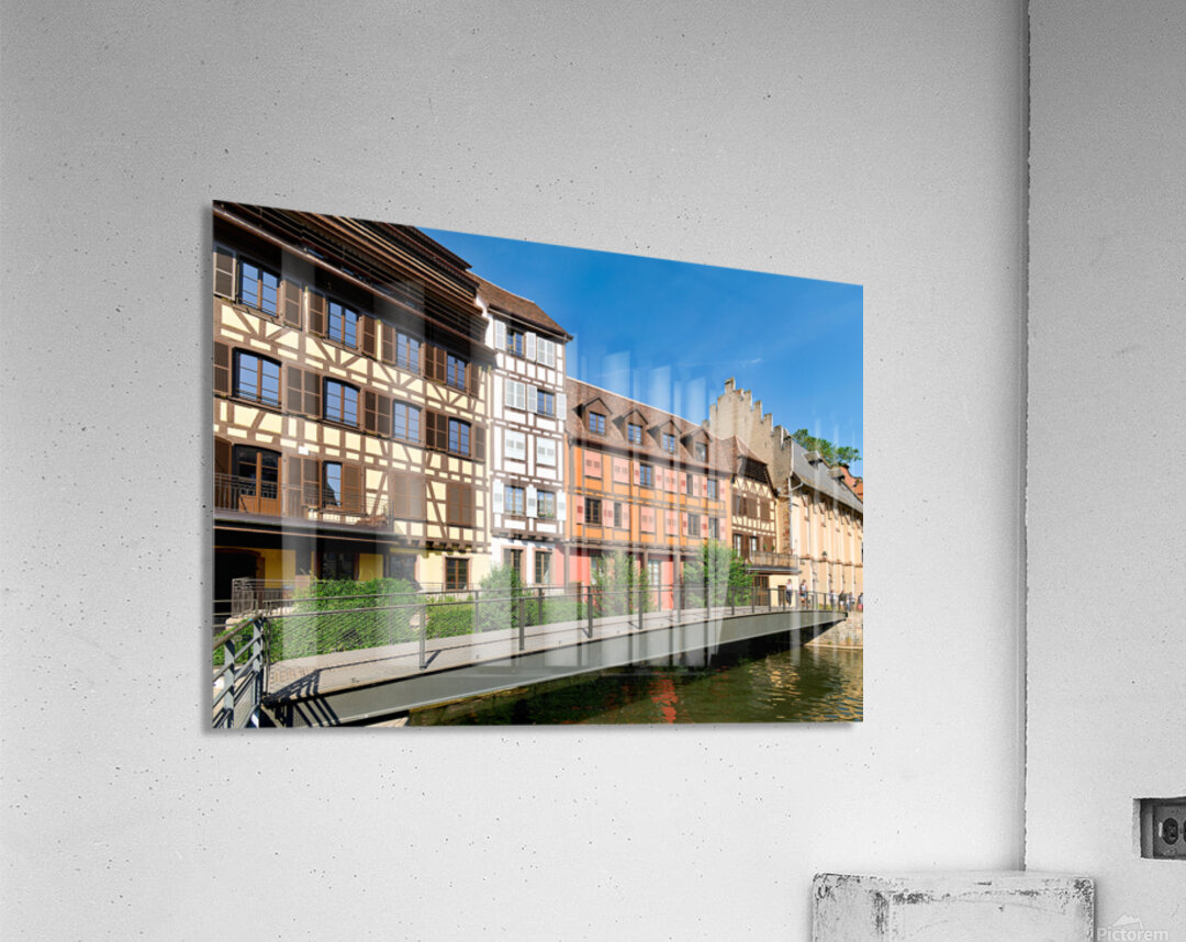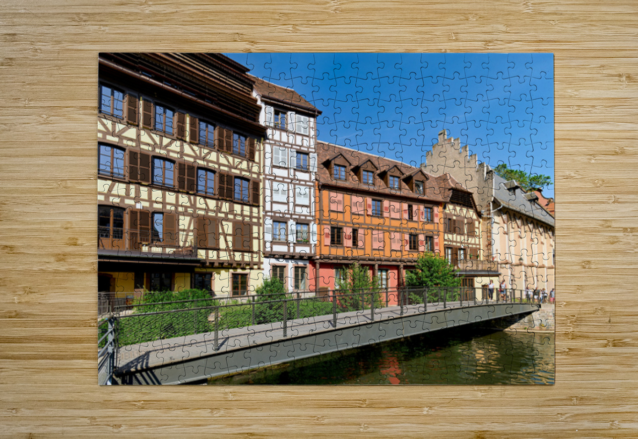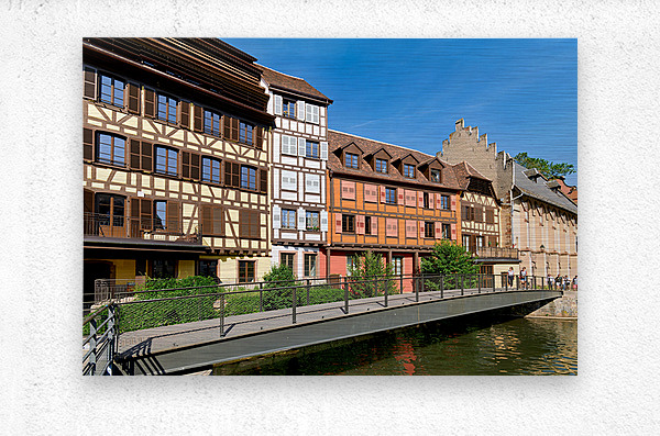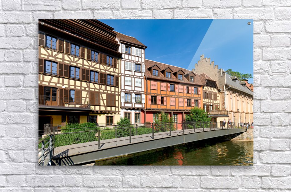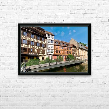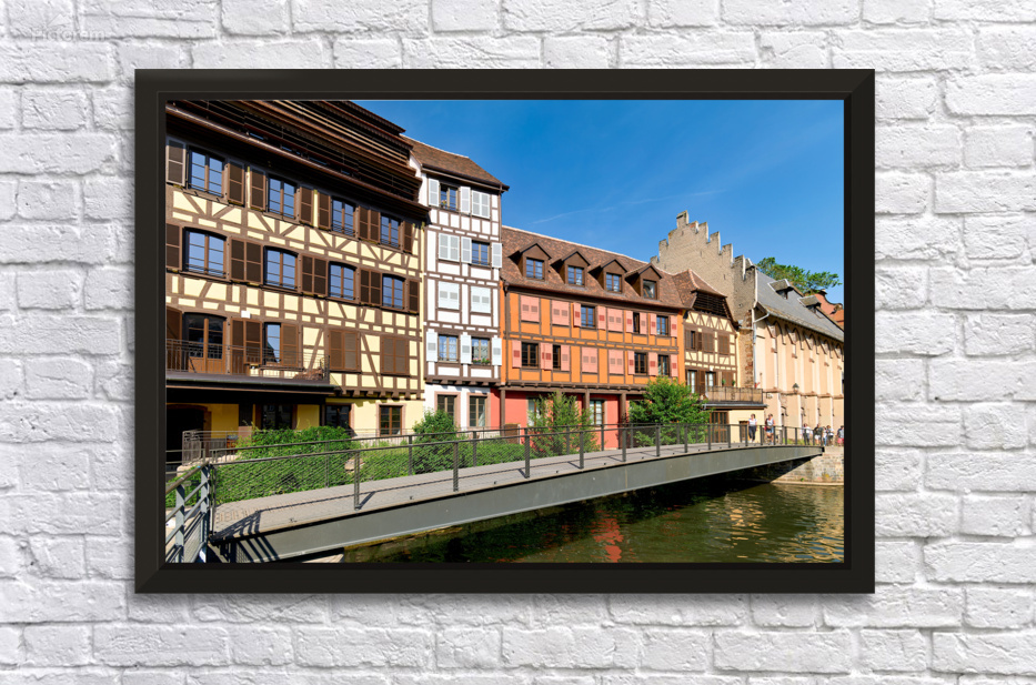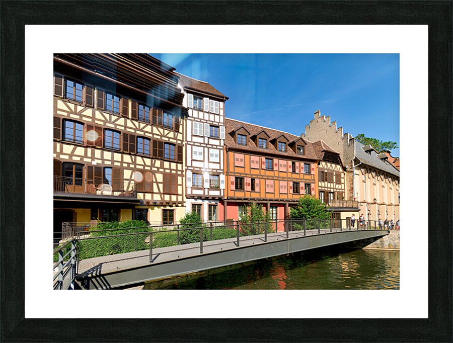 "Visitors enjoy Petit France in Strasbourg with timber framed hou" in a framed print.