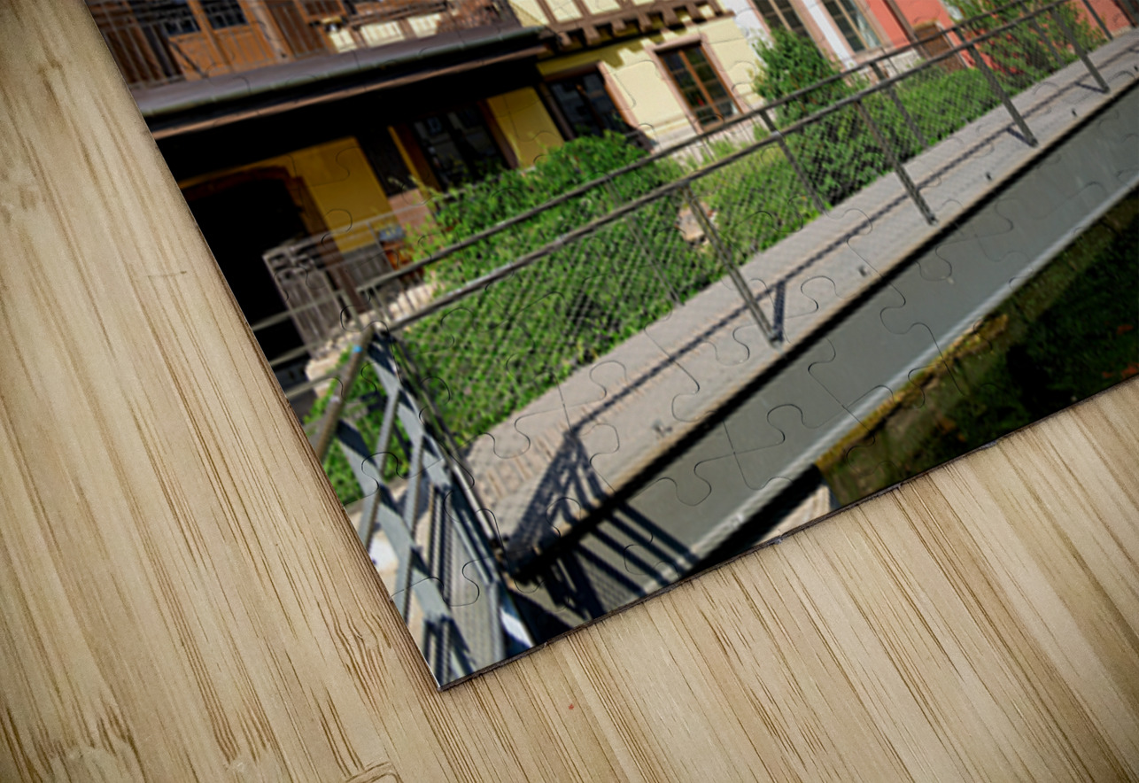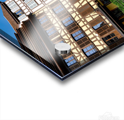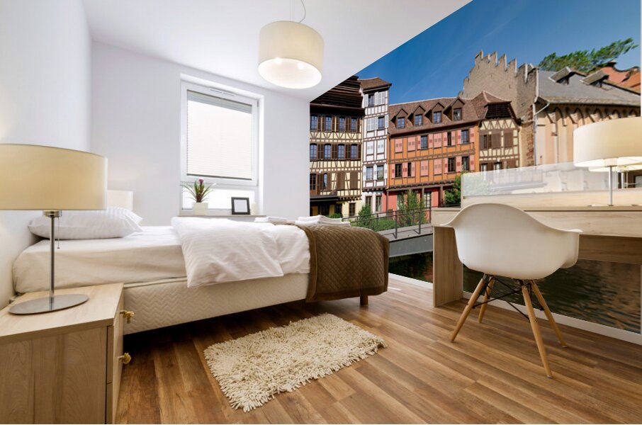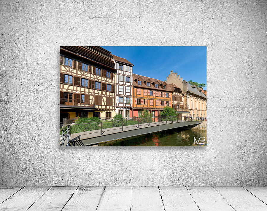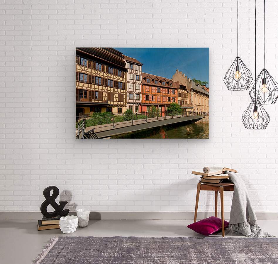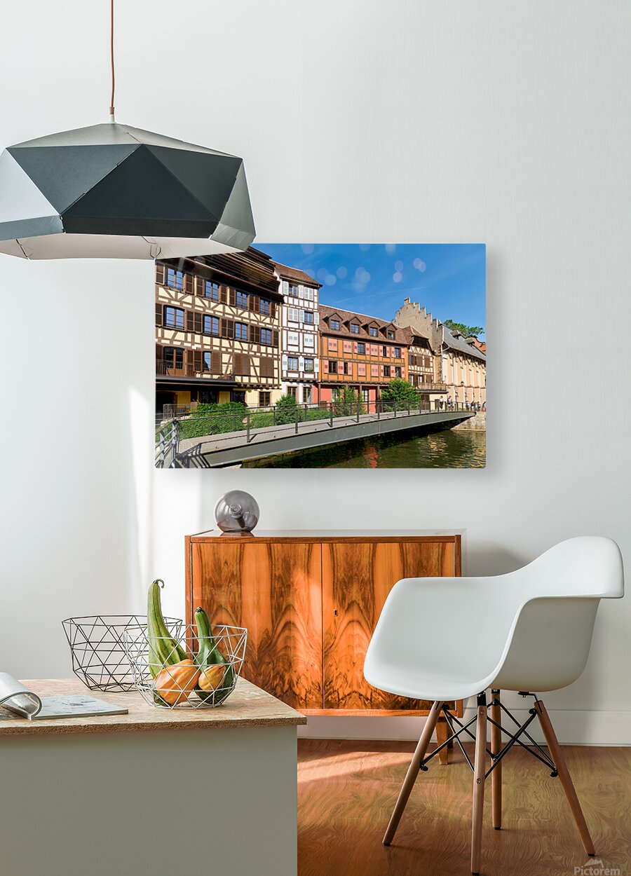 "Visitors enjoy Petit France in Strasbourg with timber framed hou" in a framed print.