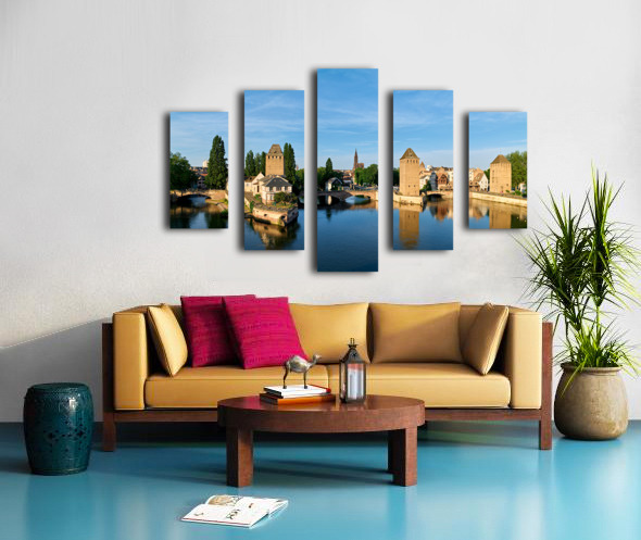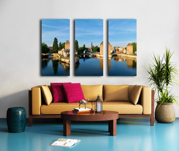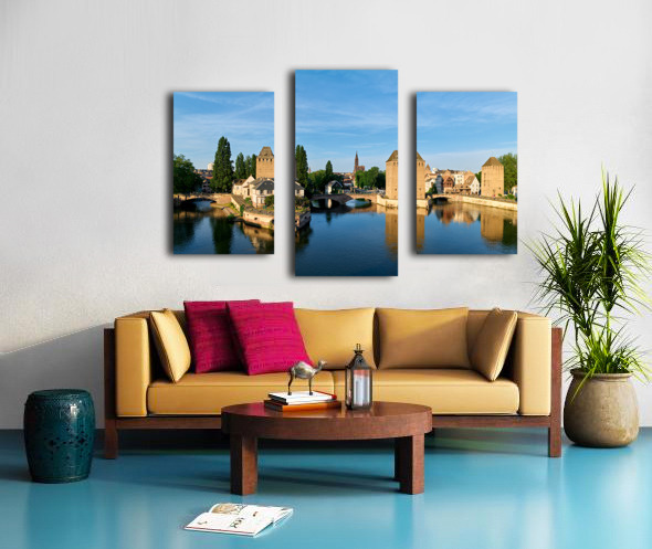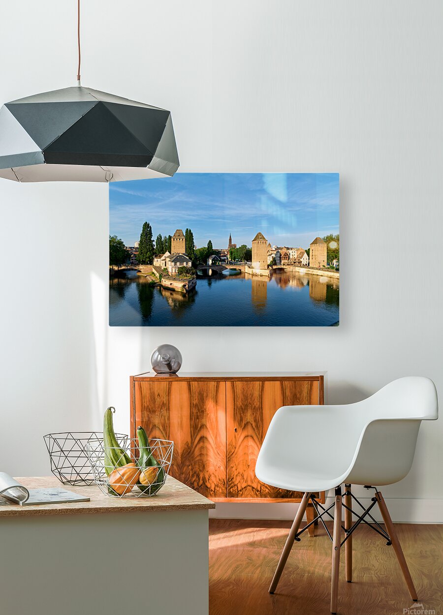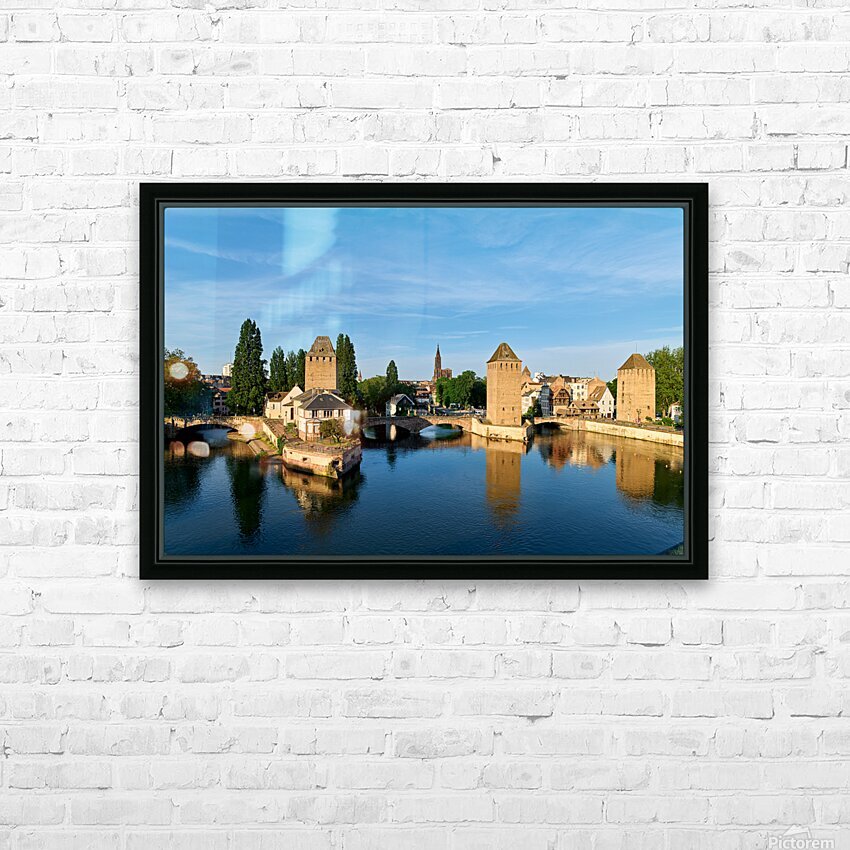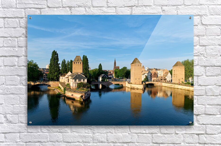 Get this artwork "Covered bridges in Strasbourg by the river on a clear day" in a framed print.
