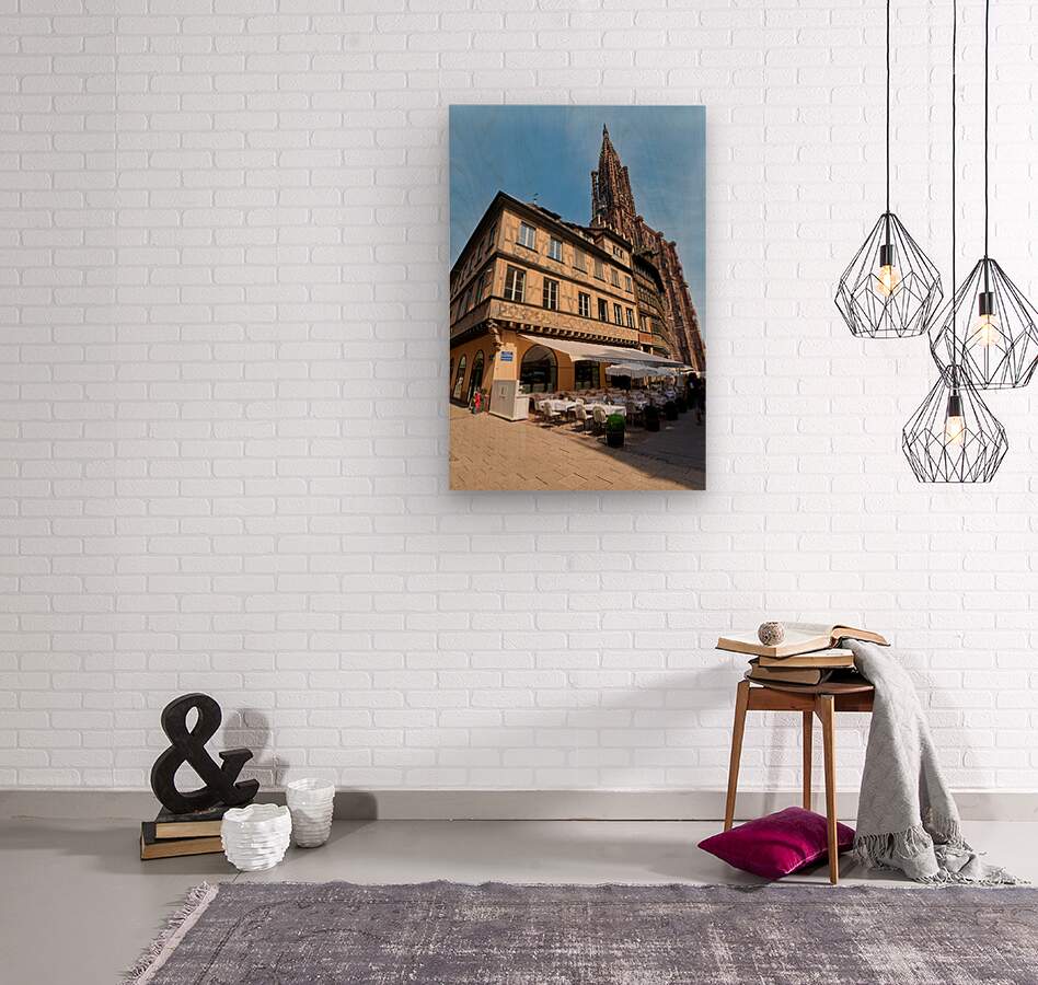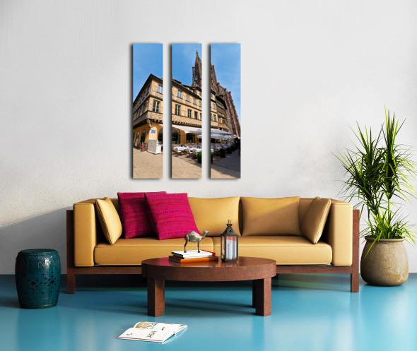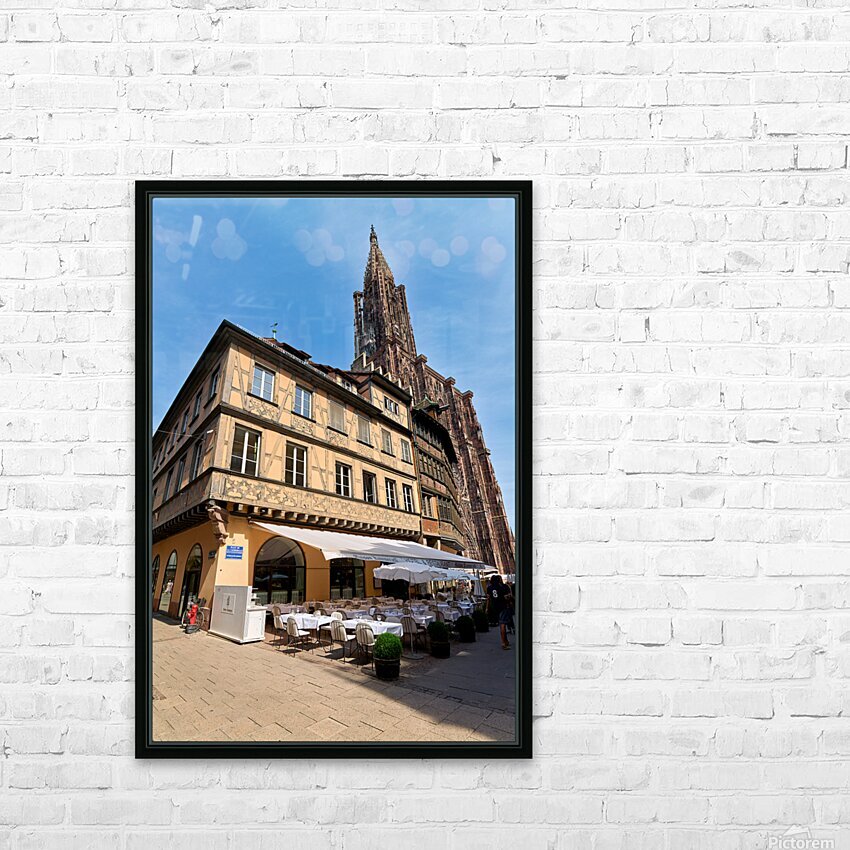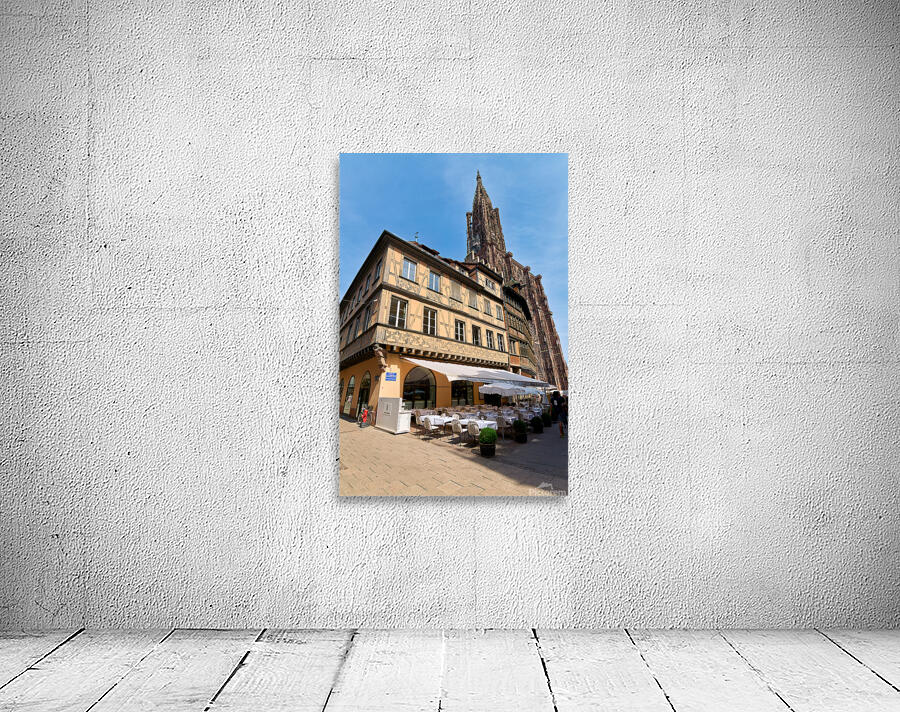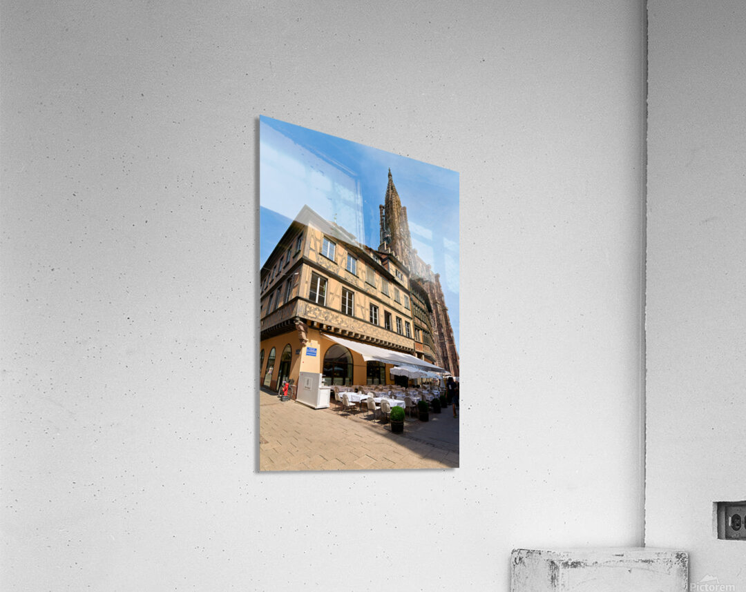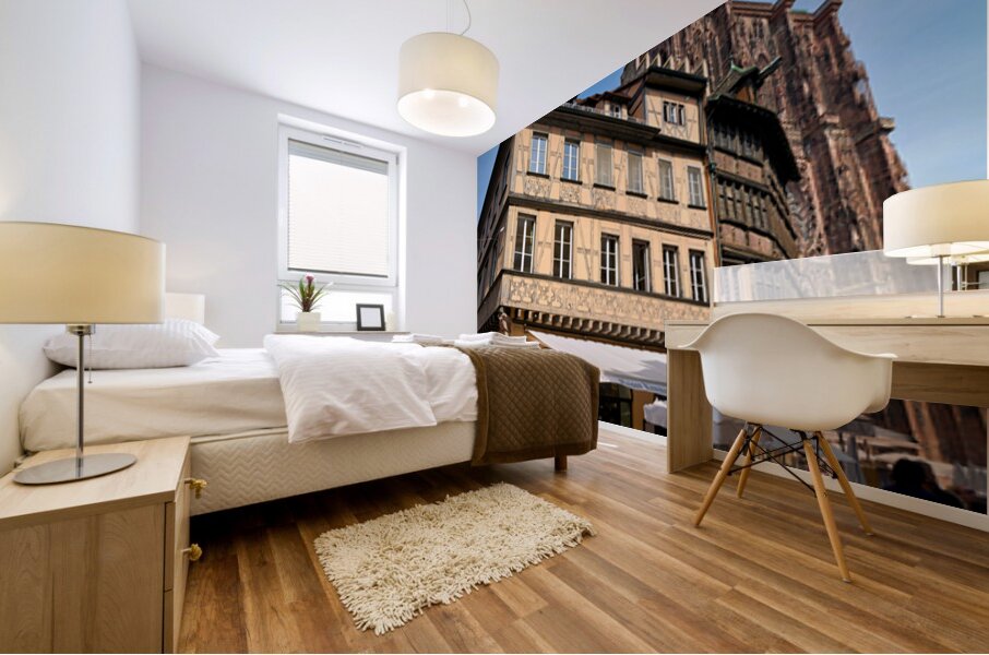 People enjoy the sights near Kammerzell House and Strasbourg Cathedral in Alsace. The area is busy with visitors and historic buildings.