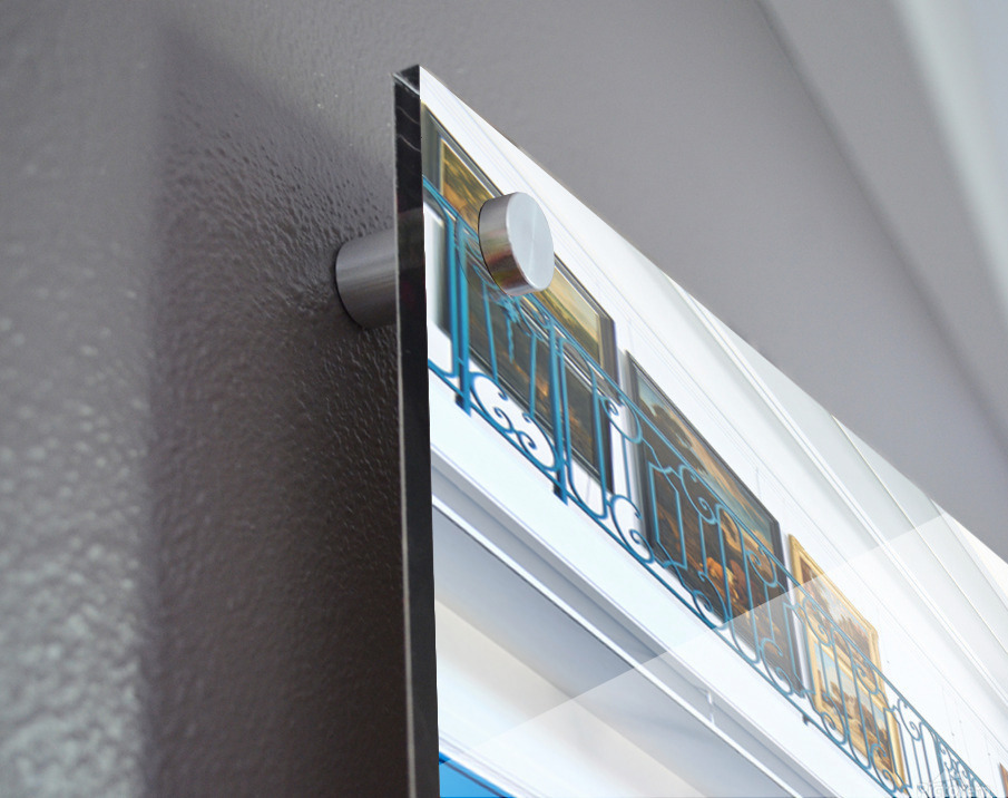 Printed to the edge - Ready to hang - provided with 4 premium polished aluminum stand off ( wall screws and mounting hardware provided )