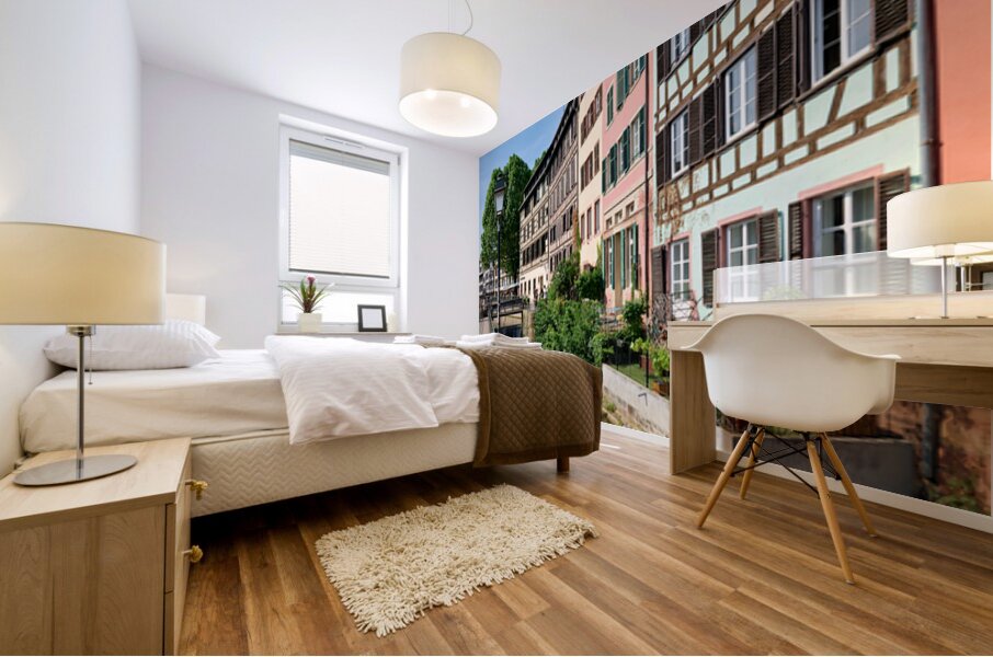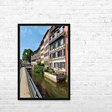 ABOUT THIS ARTWORK: COLORFUL HOUSES ON CANAL IN PETIT FRANCE DISTRICT OF STRASBOURG