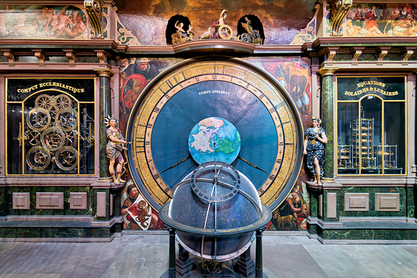 People look at the Astronomical Clock in Strasbourg Cathedral. This site blends history and science in Alsace France.