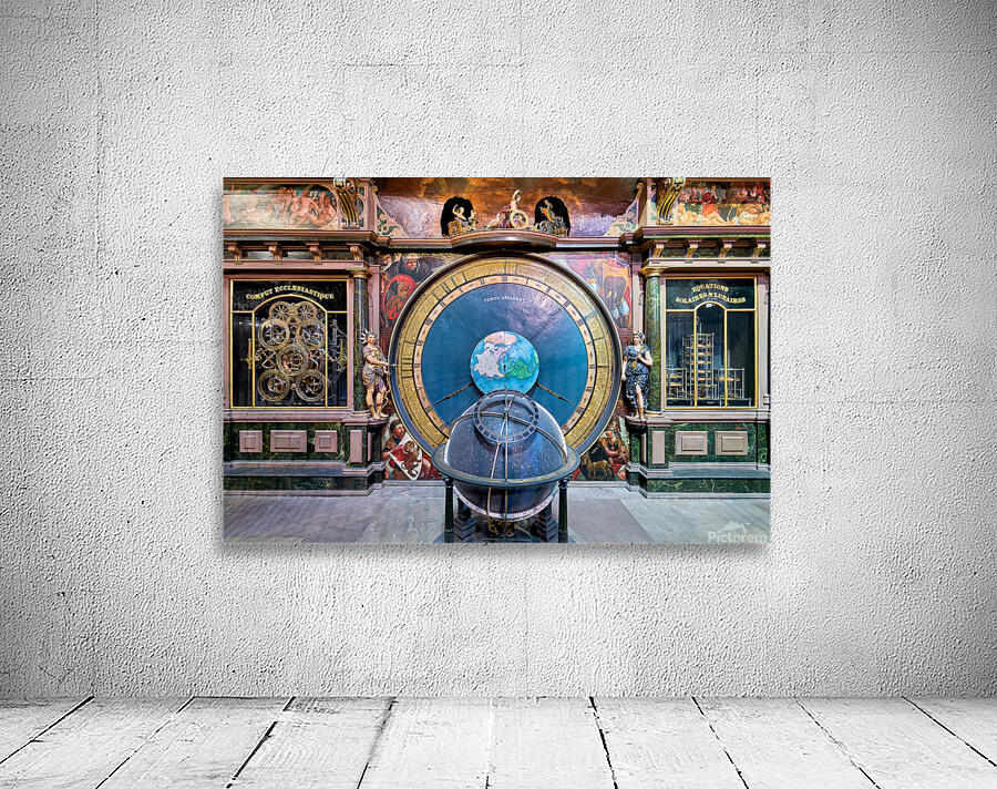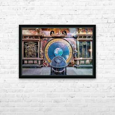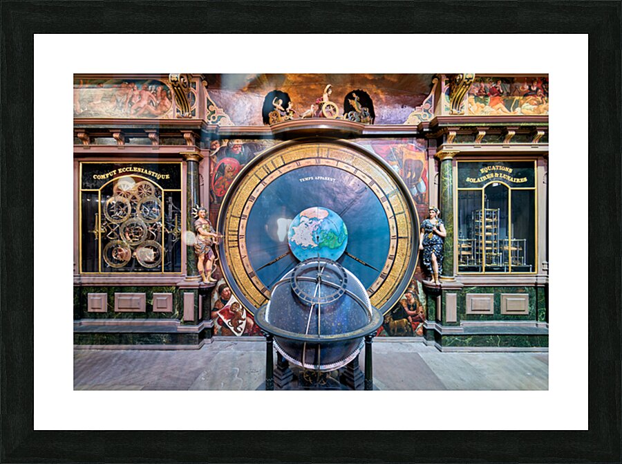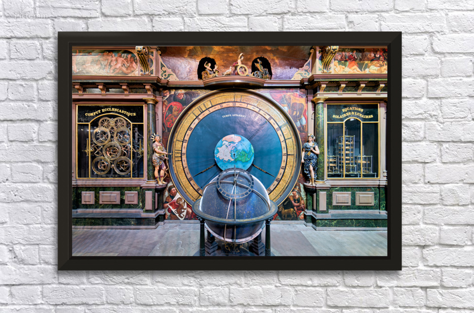 "Explore the astronomical clock in strasbourg cathedral" in a framed print.