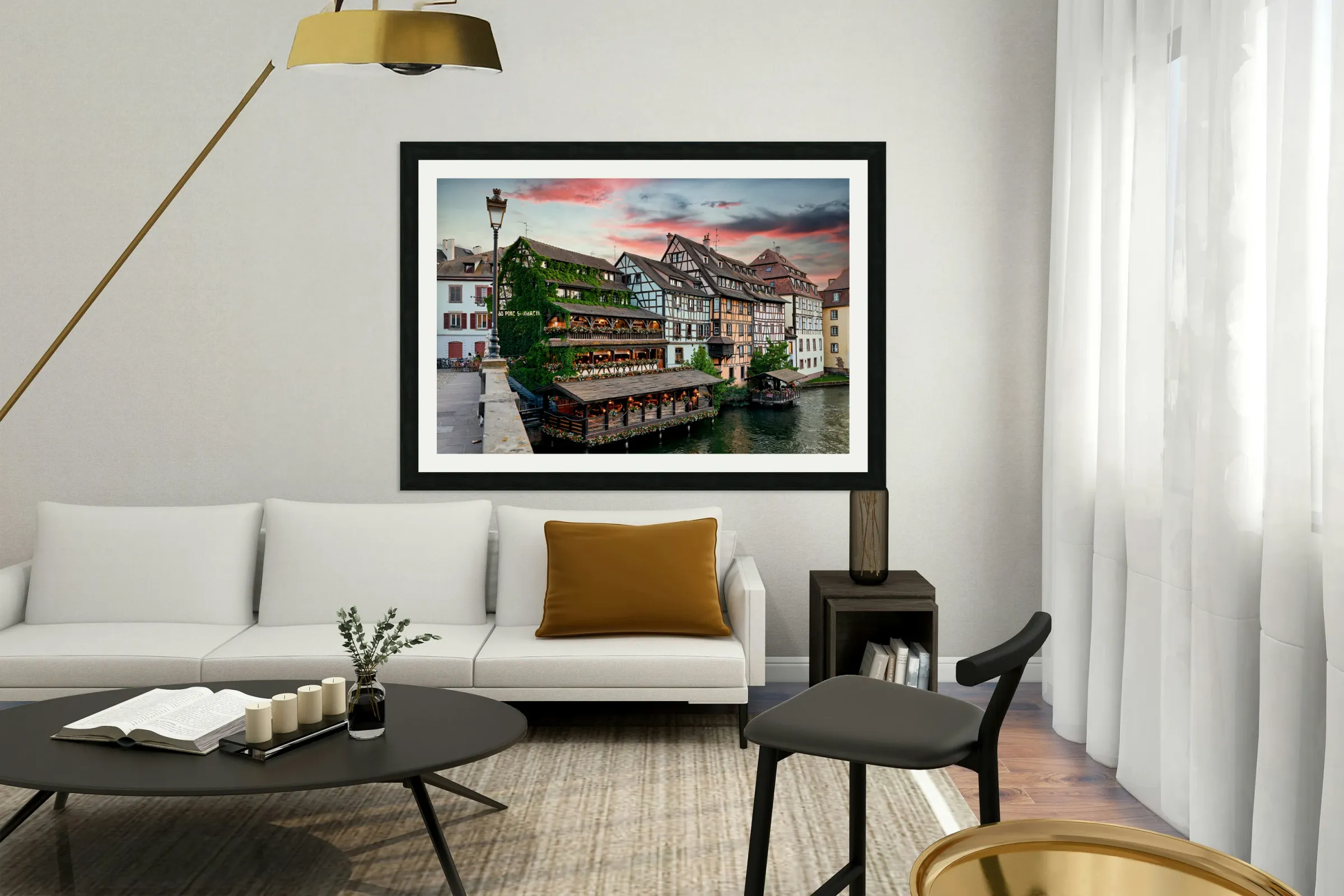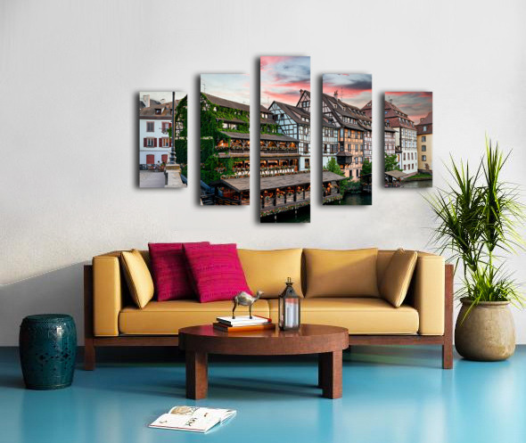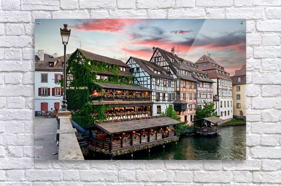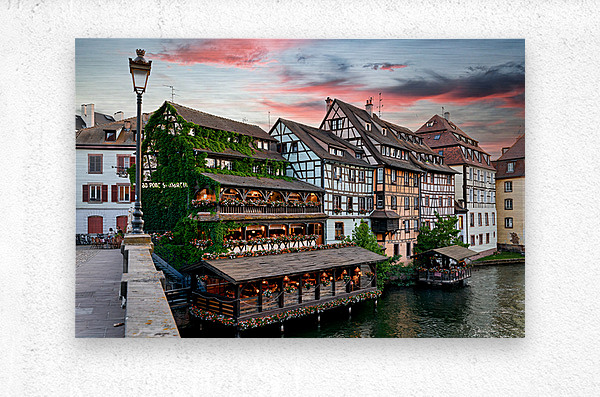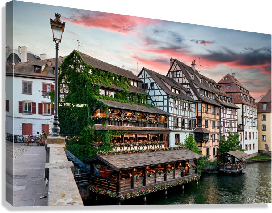 ABOUT THIS ARTWORK: EVENING DINNER AT PETIT FRANCE DISTRICT IN STRASBOURG ALSACE