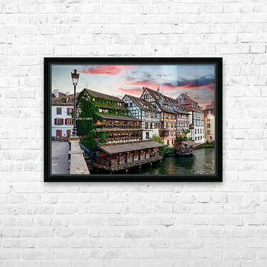 Get this artwork "Evening dinner at Petit France district in Strasbourg Alsace" in a framed print.