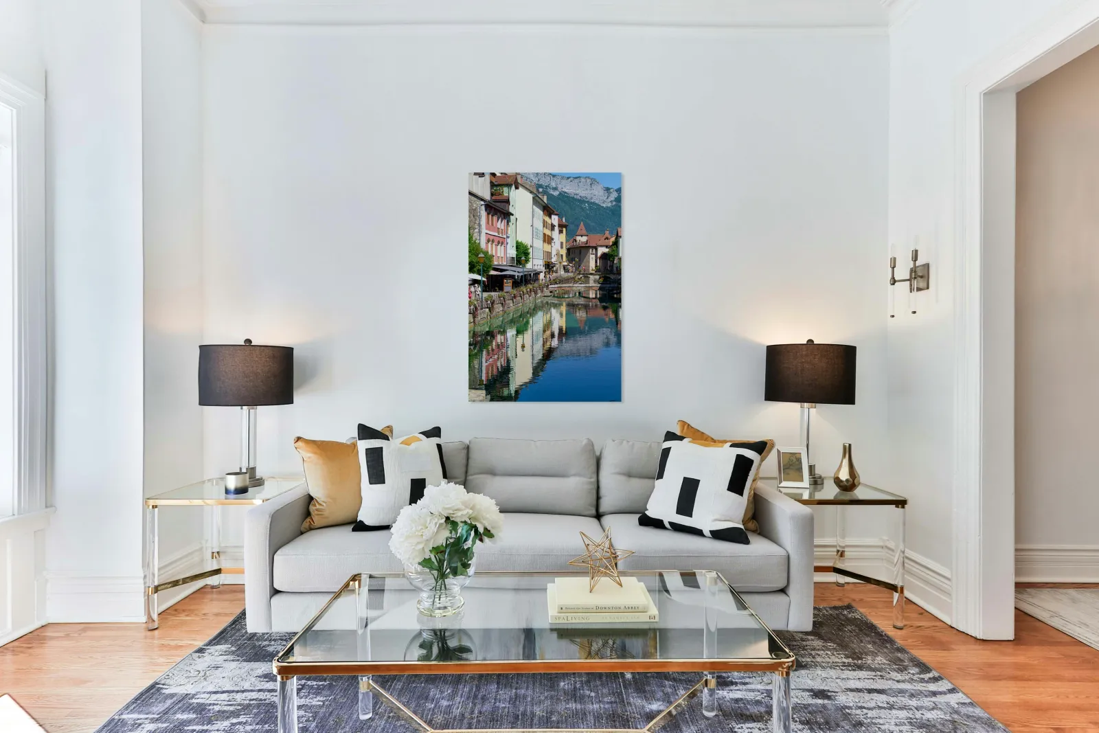 Printed to the edge - Ready to hang - provided with 4 premium polished aluminum stand off ( wall screws and mounting hardware provided )