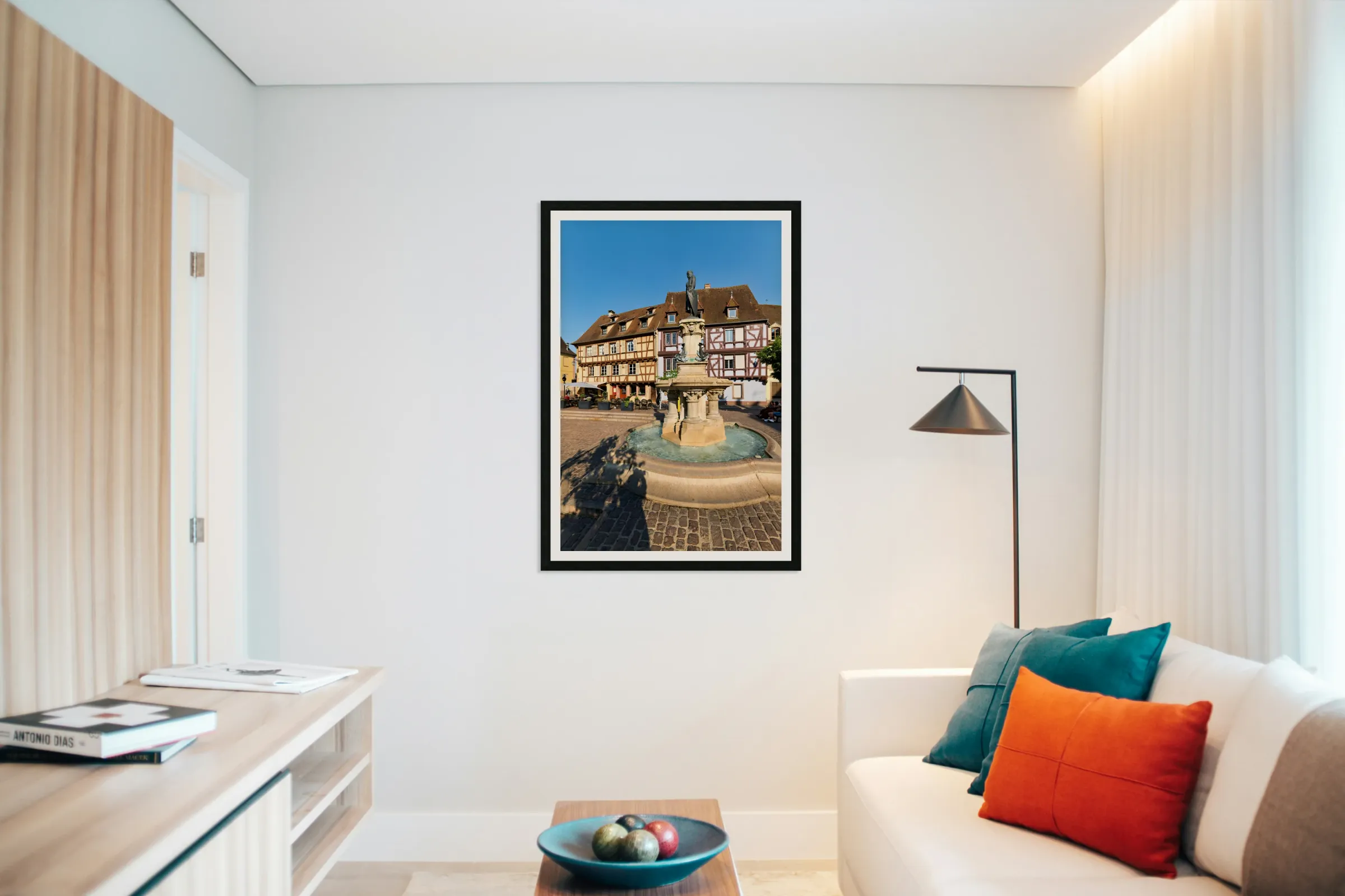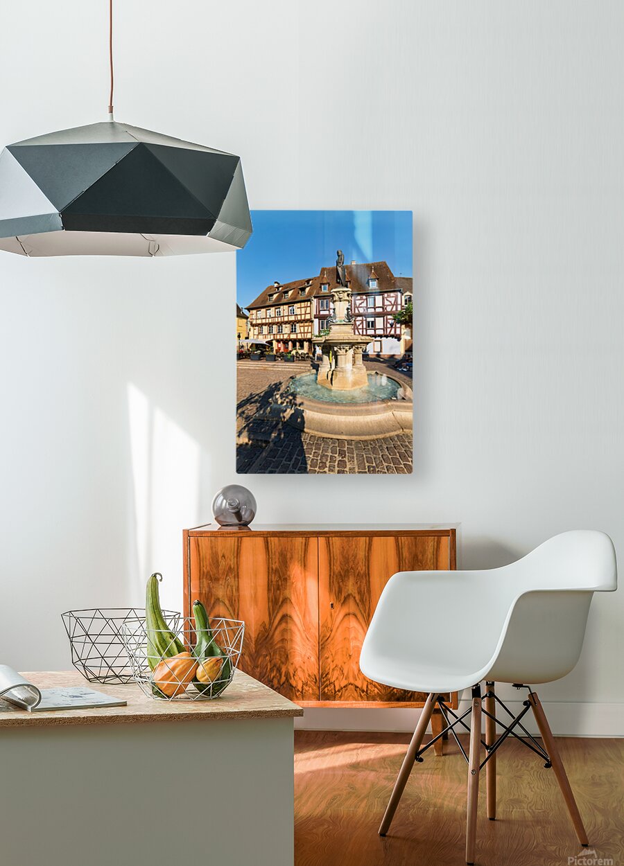 Get this artwork "Timber framed houses and fountain in Petite Venise Colmar France" in a framed print.