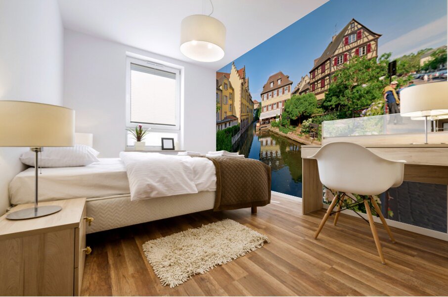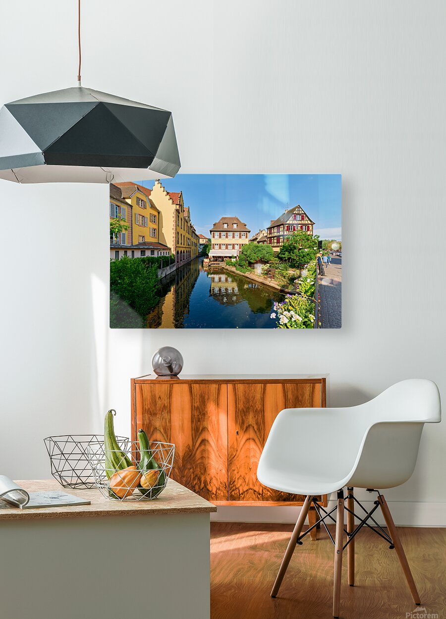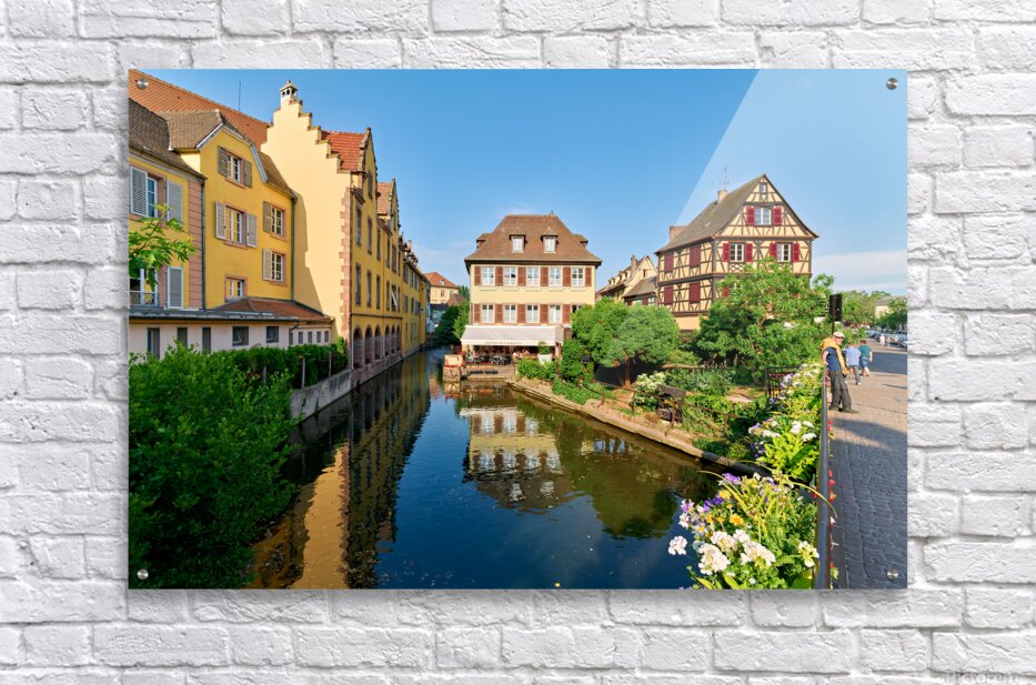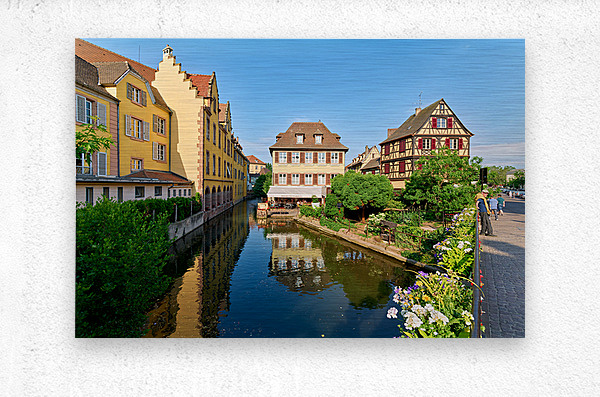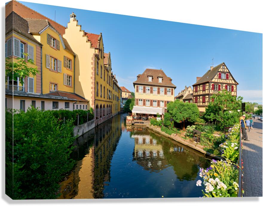 ABOUT THIS ARTWORK: VISITORS ENJOY SUNNY DAY BY CANALS IN COLMAR FRANCE
