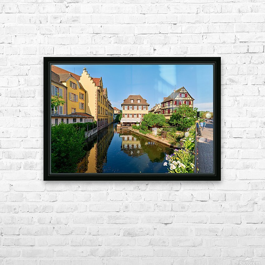 Visitors enjoy sunny day by canals in Colmar France Picture Frame Printing