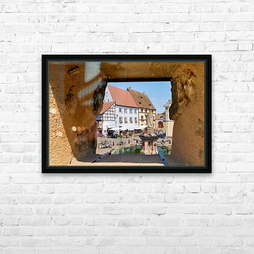 Visitors enjoy Saint Leon square in Eguisheim Alsace on wine rou Frame print