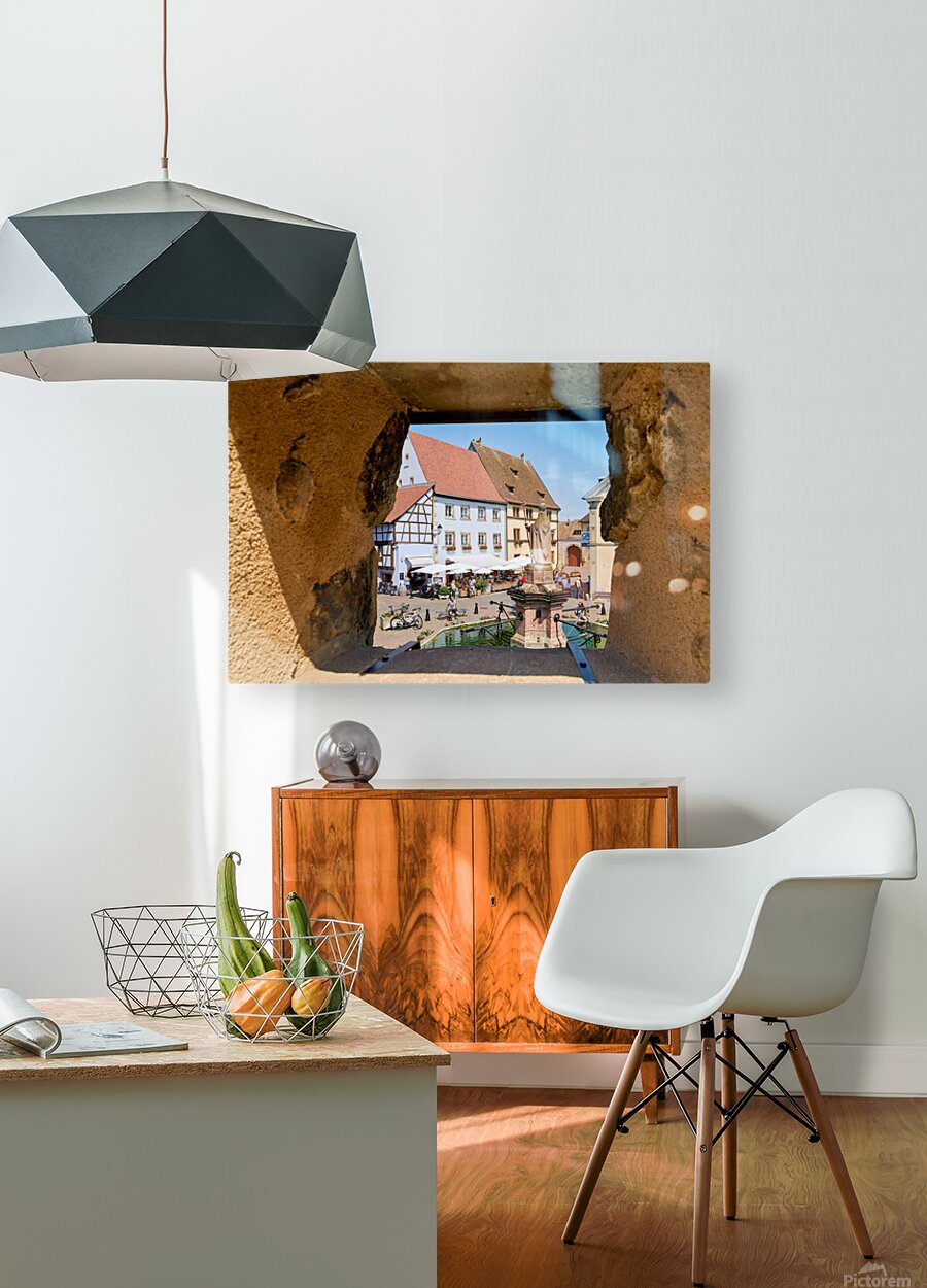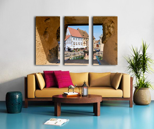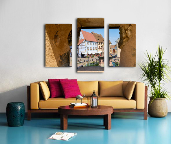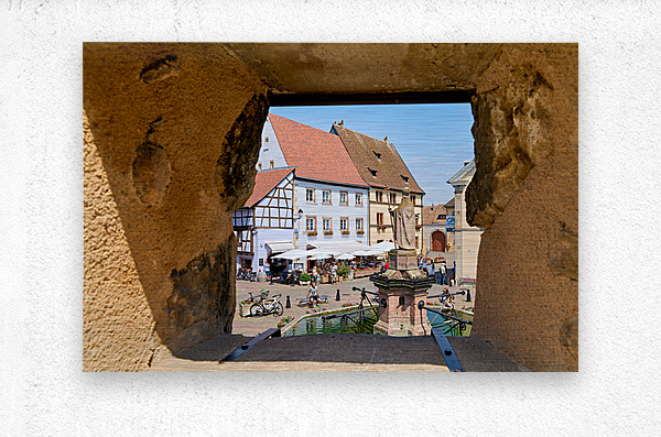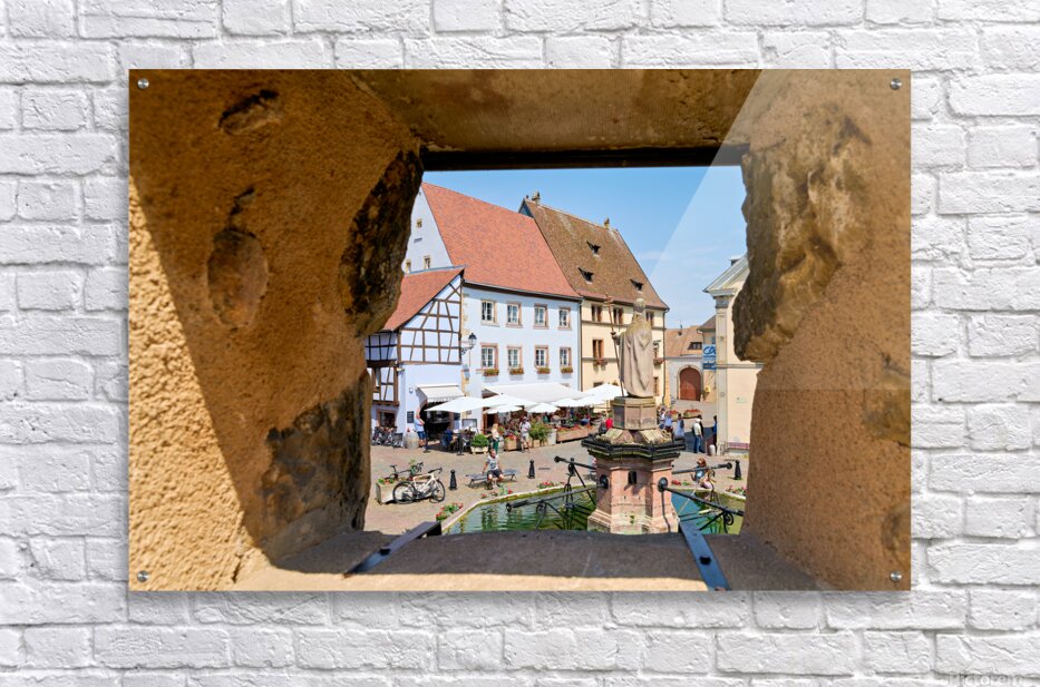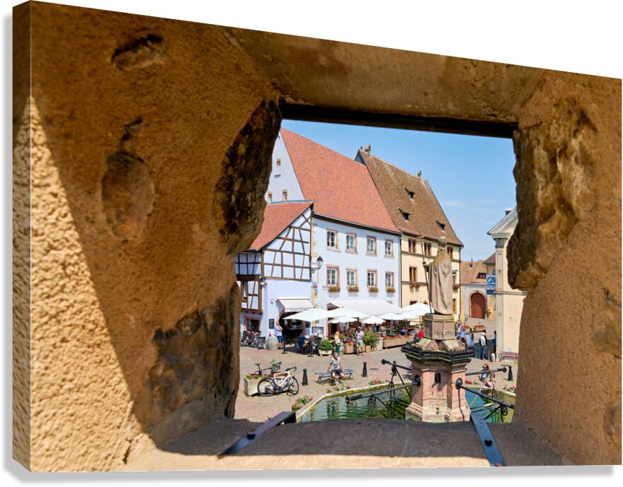 ABOUT THIS ARTWORK: VISITORS ENJOY SAINT LEON SQUARE IN EGUISHEIM ALSACE ON WINE ROU