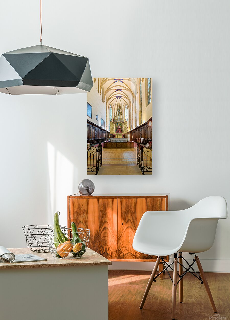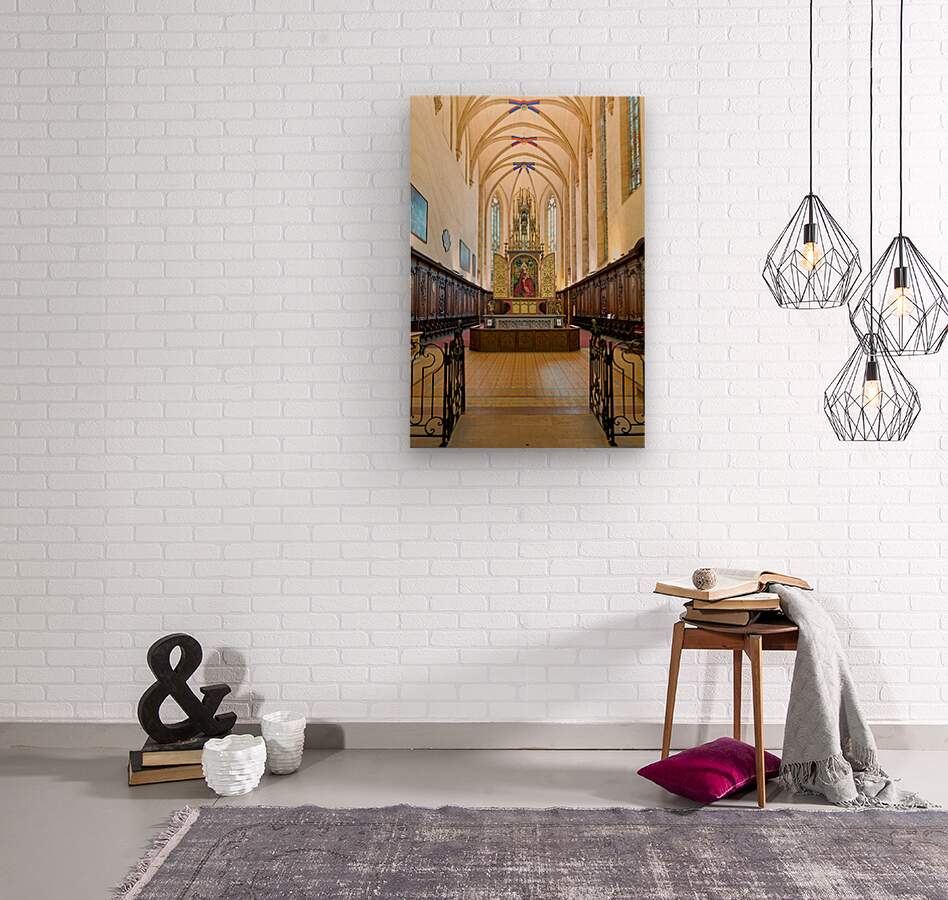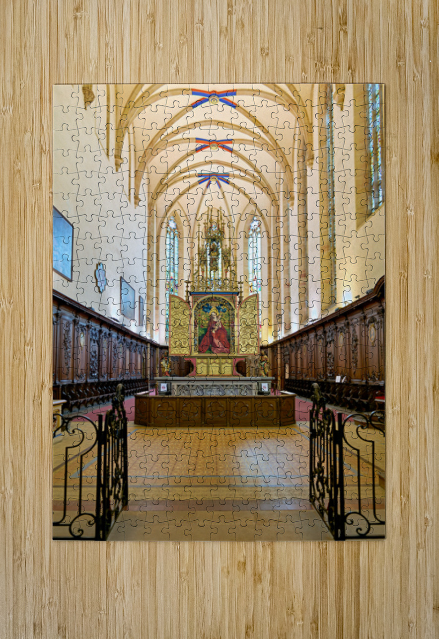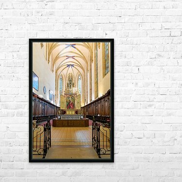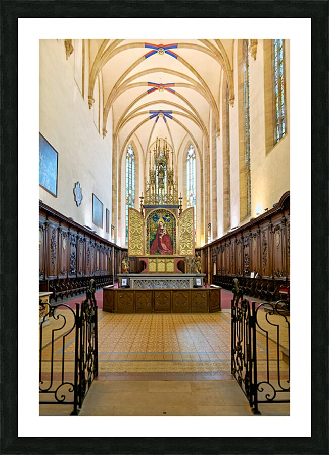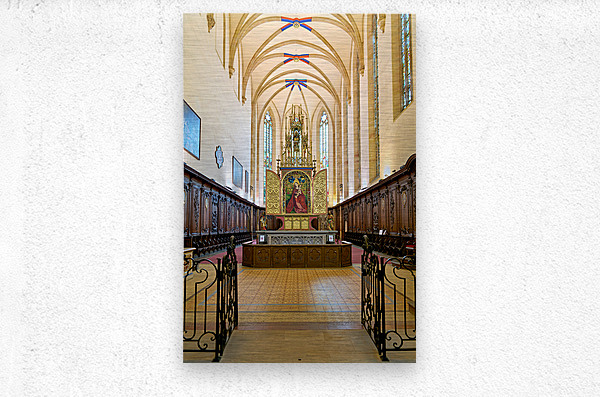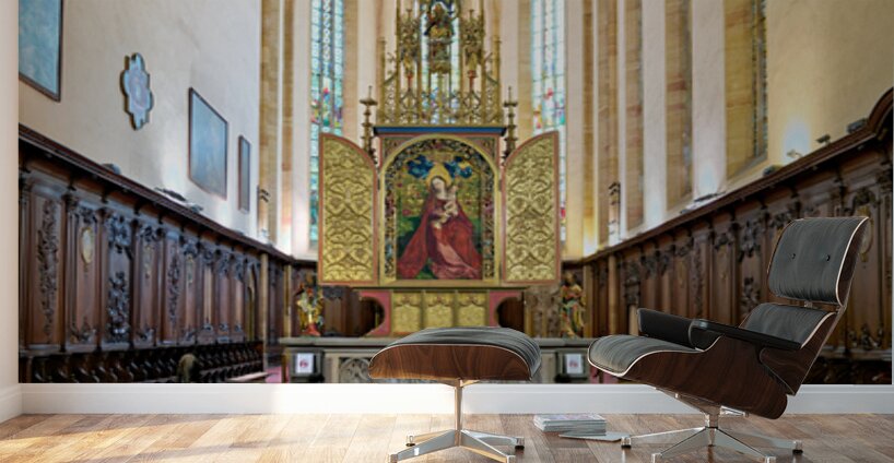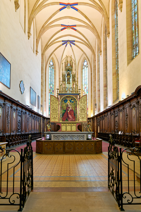 Visitors tour the Dominican Church in Colmar viewing the Madonna of the Rose Bower altar along the Alsace Wine Route.