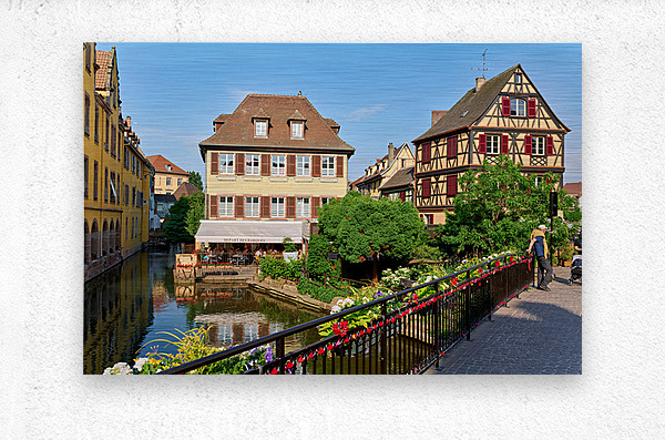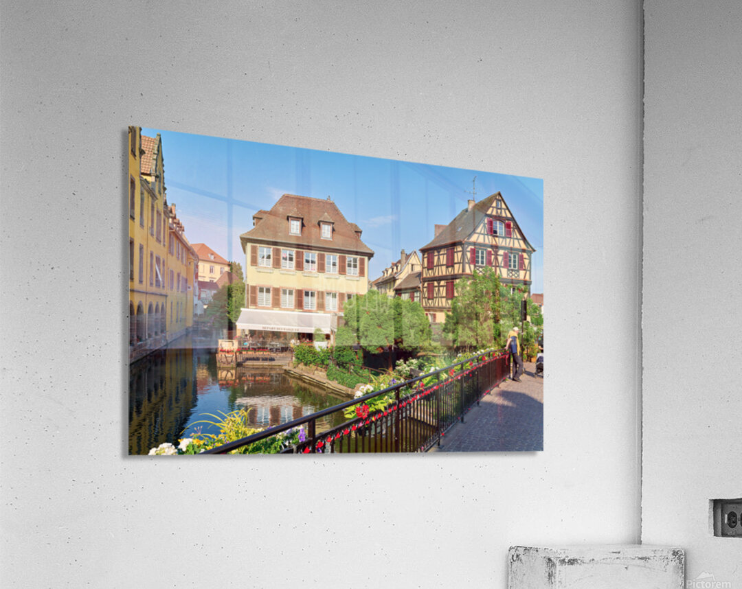 Visitors stroll by timber framed houses along the canal in Colma Picture Frame Printing