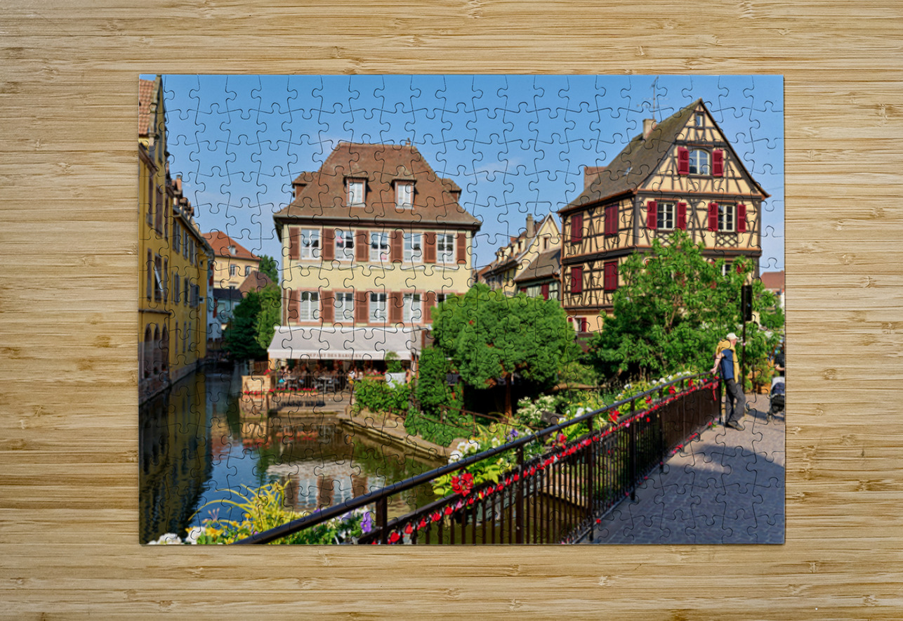 Visitors stroll by timber framed houses along the canal in Colma Marco Brivio Puzzle printing