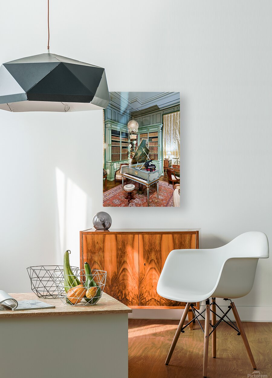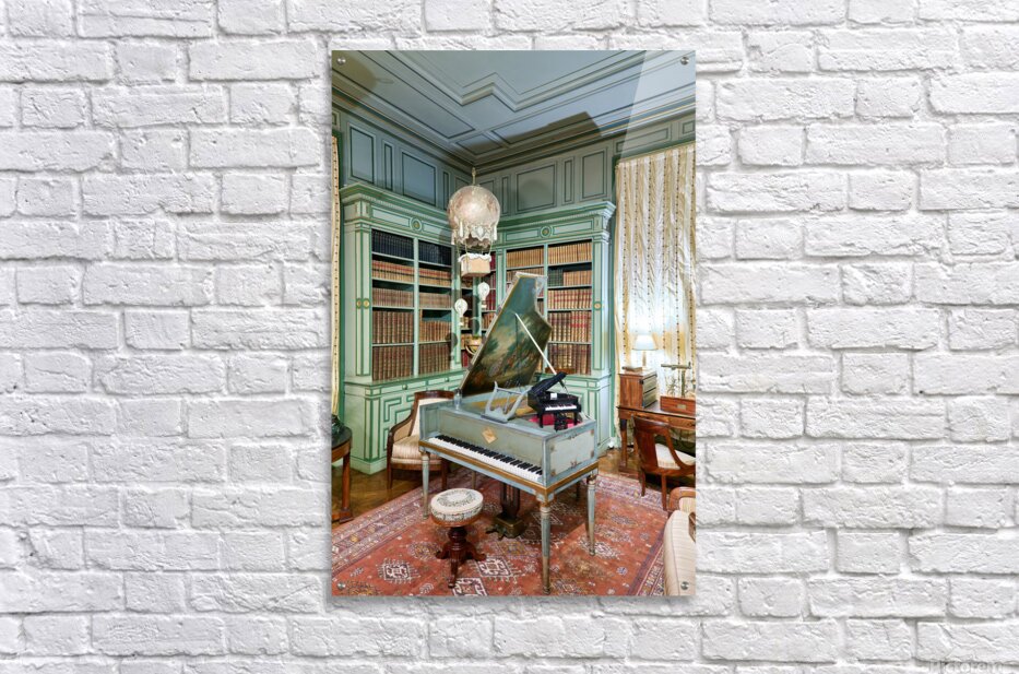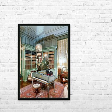 Get this artwork "Chateau de Cheverny interior with piano and bookshelves" in a framed print.
