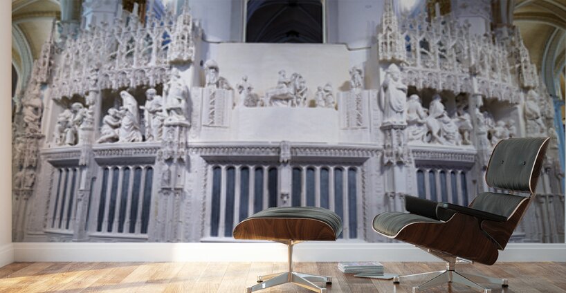 Get this artwork "Chartres Cathedral interior with detailed white altar and sculpt" in a framed print.