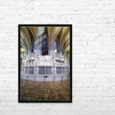 Chartres Cathedral interior with detailed white altar and sculpt Picture Frame Printing