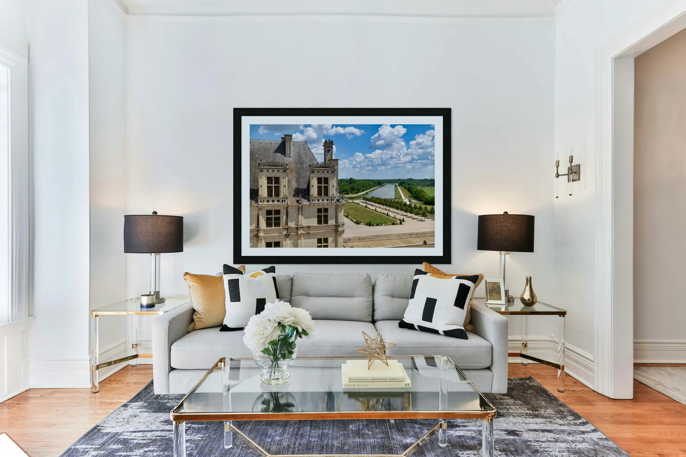 Get this artwork "View of gardens at Chateau de Chambord in France on a sunny day" in a framed print.