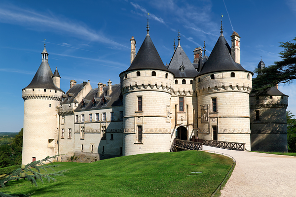 Chateau de Chaumont sur Loire stands tall amidst green grass and blue sky inviting visitors to explore its rich history and architecture.