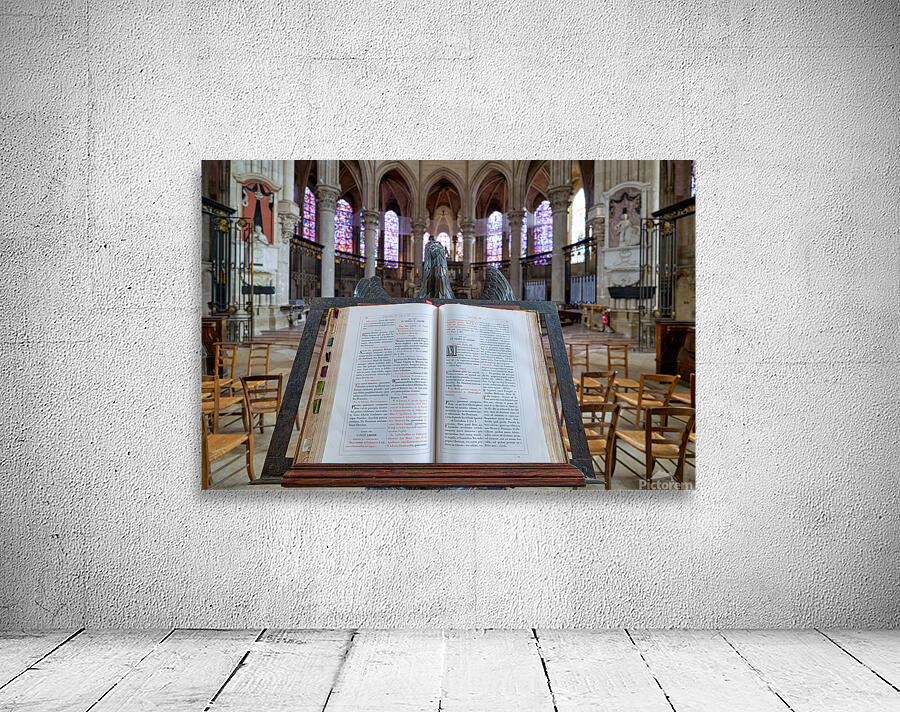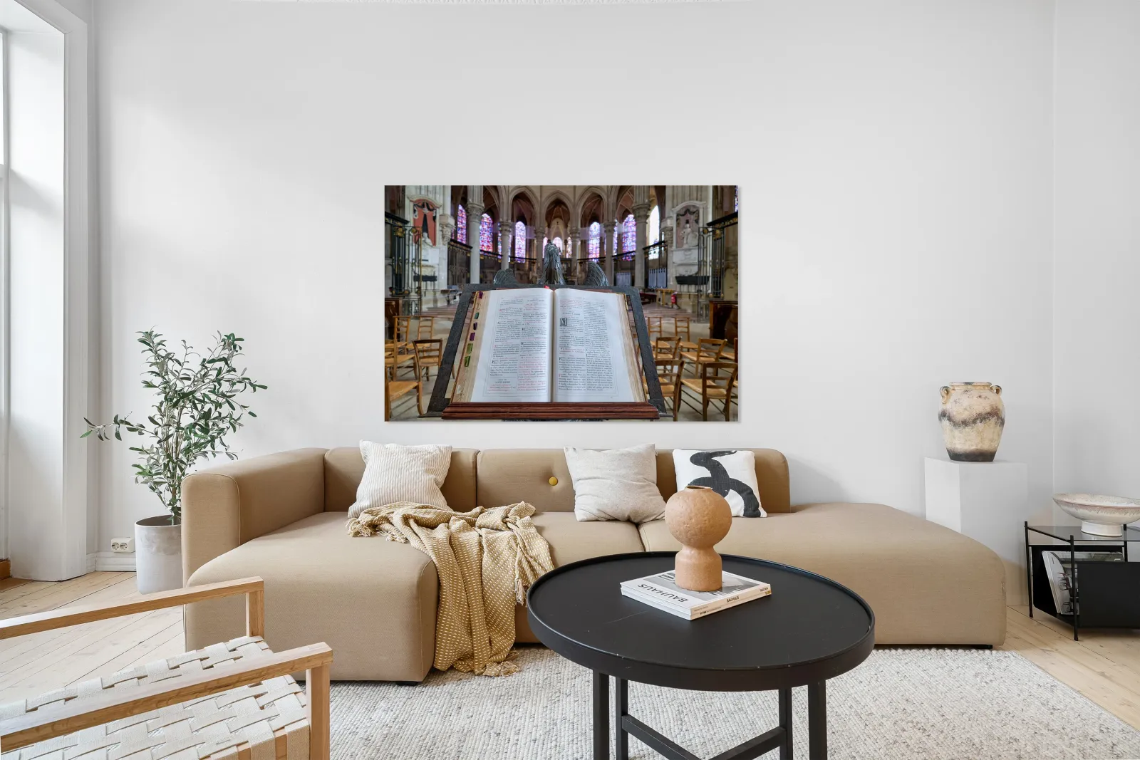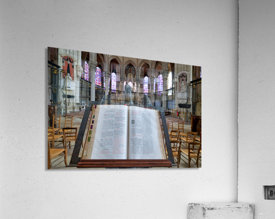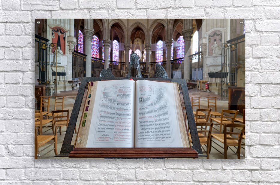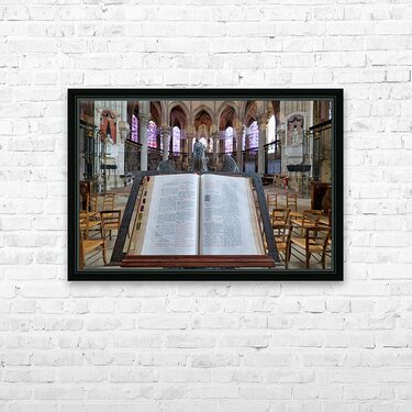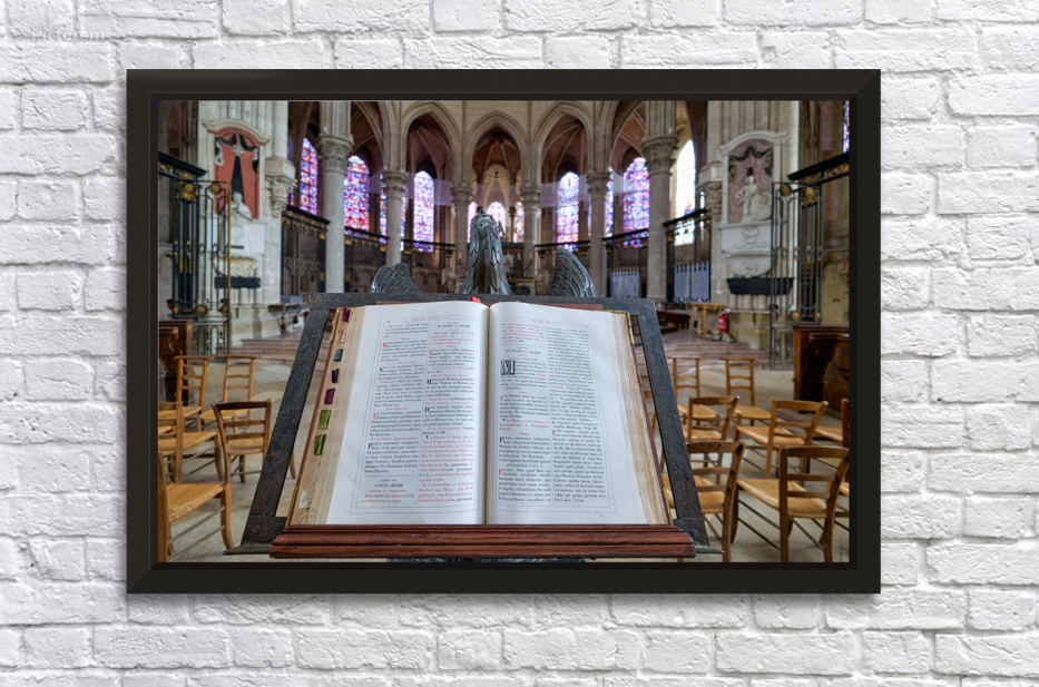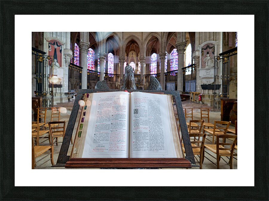 "Holy Bible placed at altar in Auxerre Cathedral in Burgundy Fran" in a framed print.