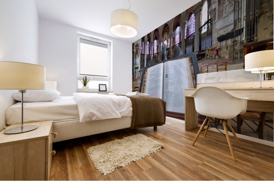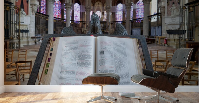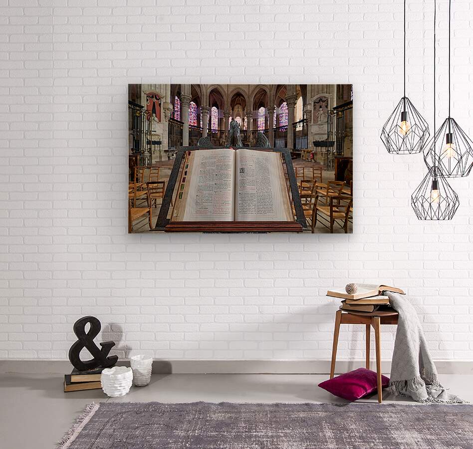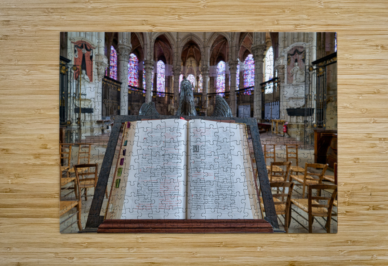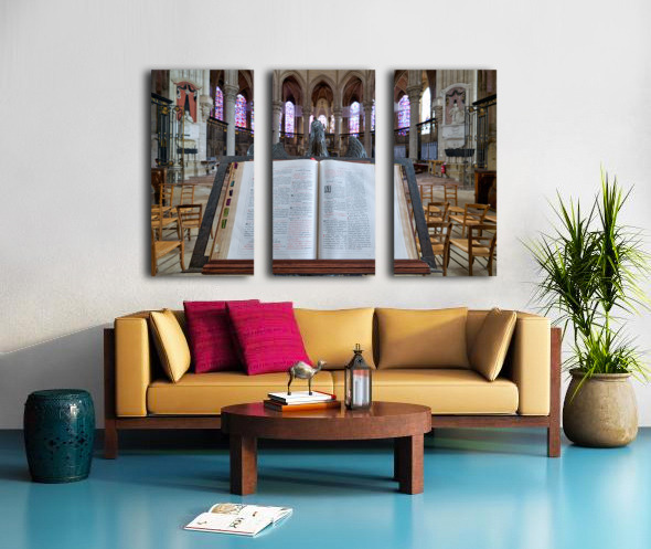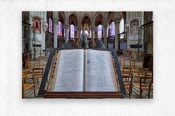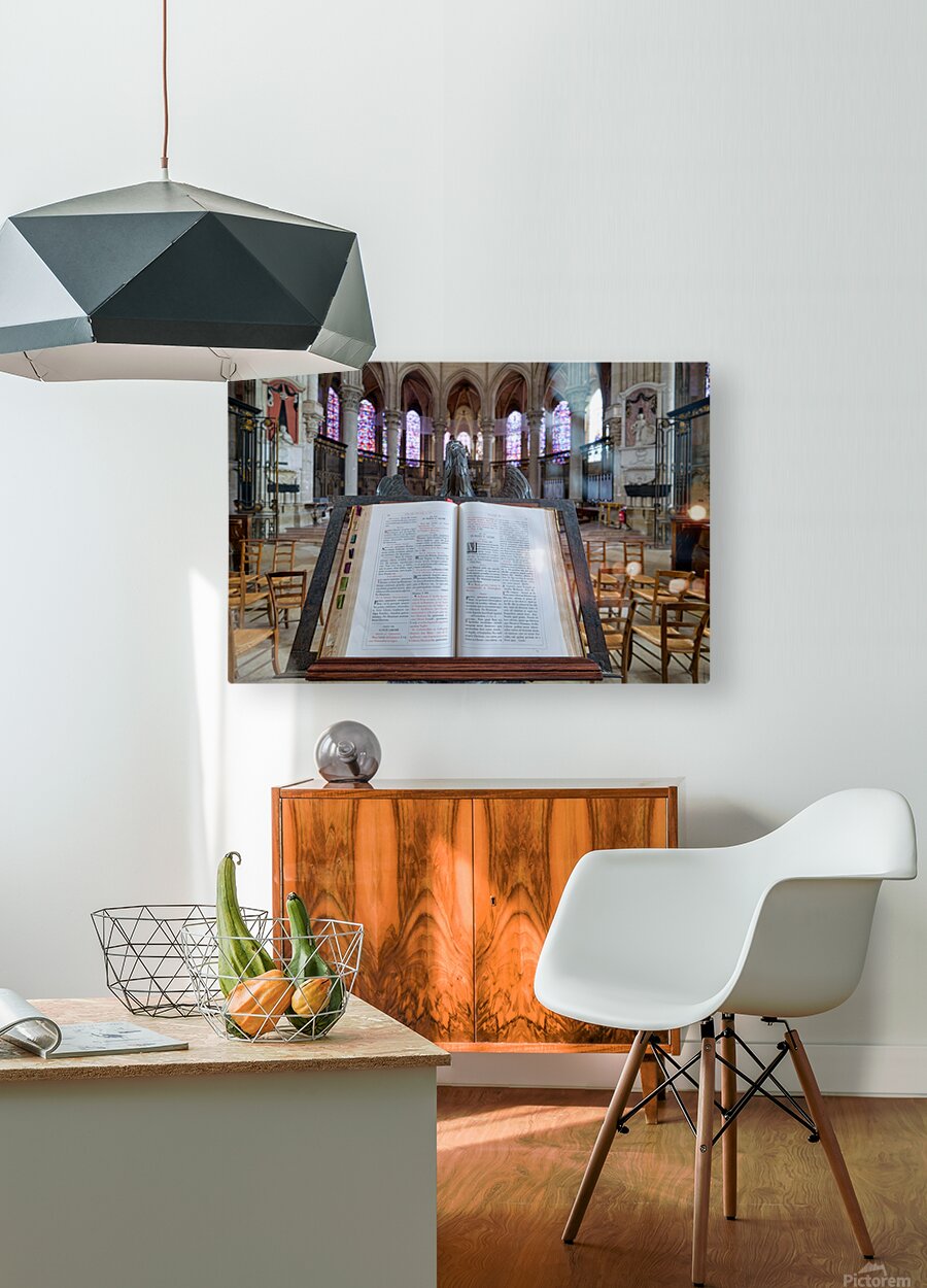 "Holy Bible placed at altar in Auxerre Cathedral in Burgundy Fran" in a framed print.