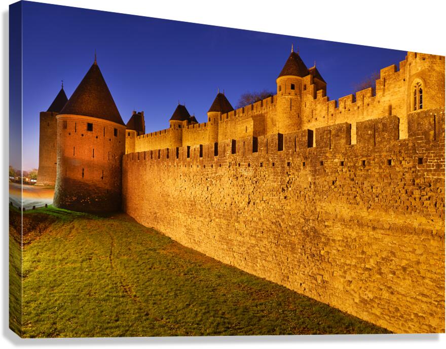 ABOUT THIS ARTWORK: EXPLORING THE ANCIENT WALLS OF CARCASSONNE IN FRANCE AT TWILIGHT