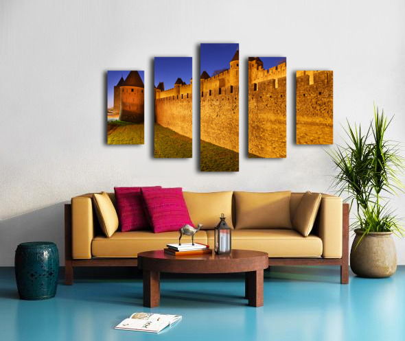 Exploring the ancient walls of Carcassonne in France at twilight Frame print