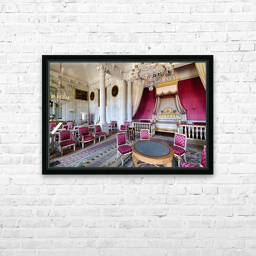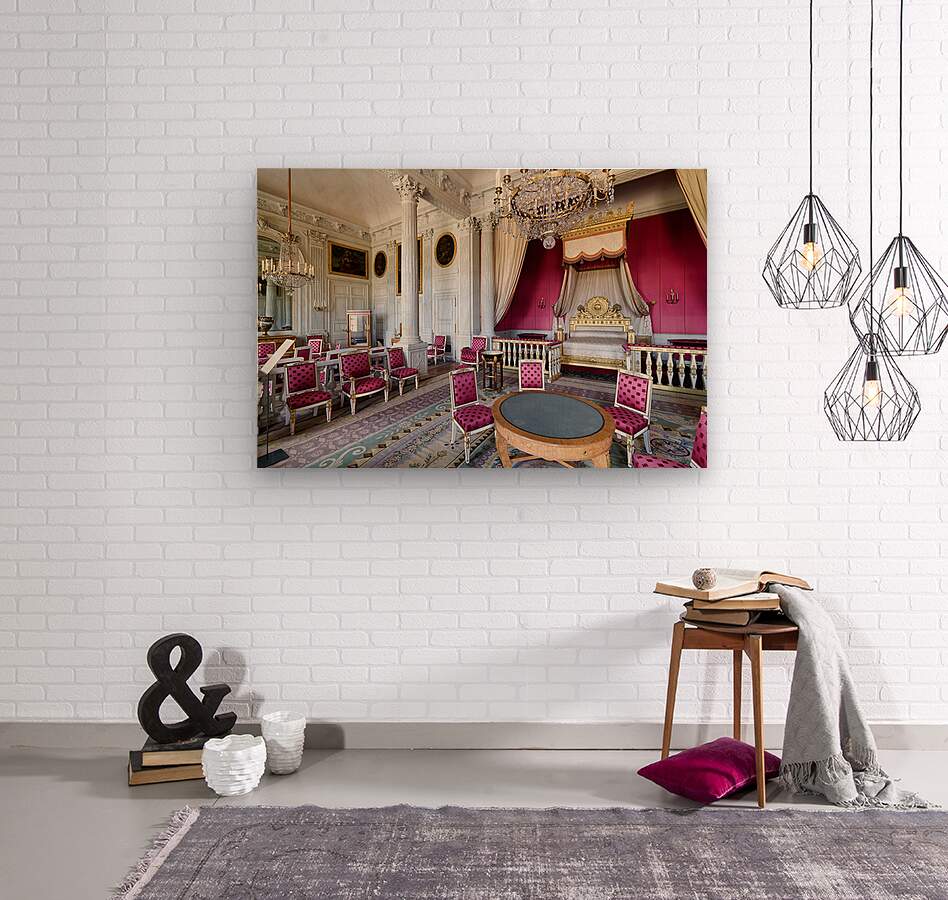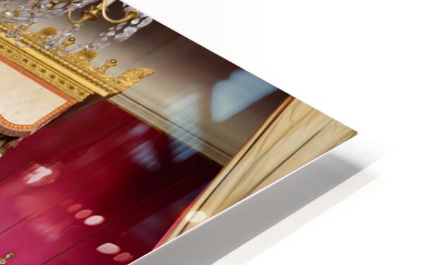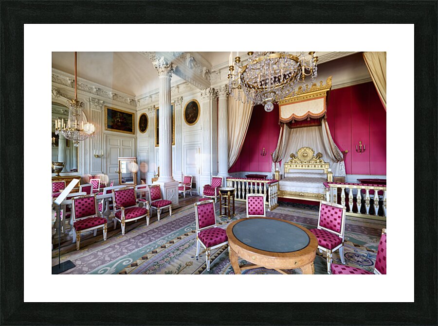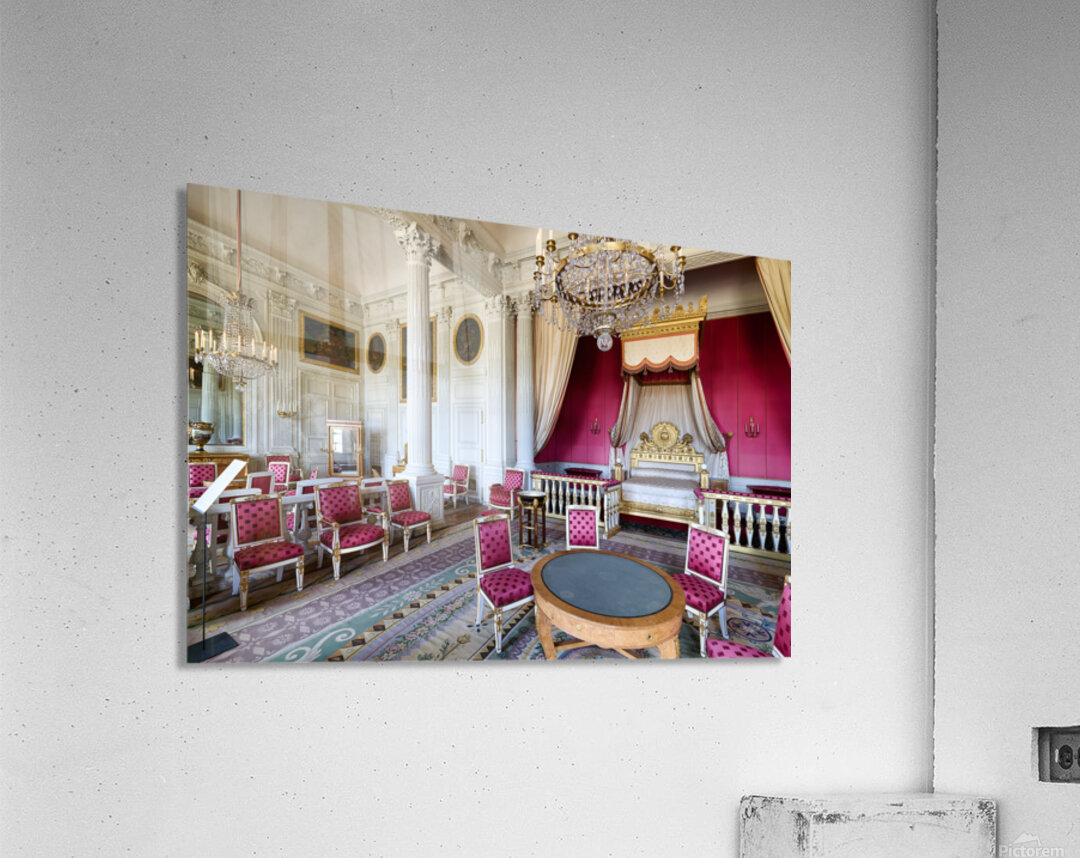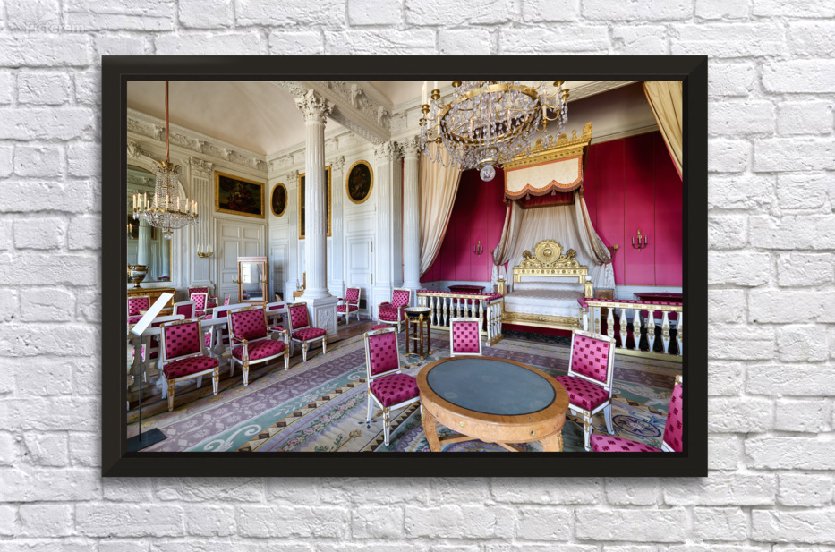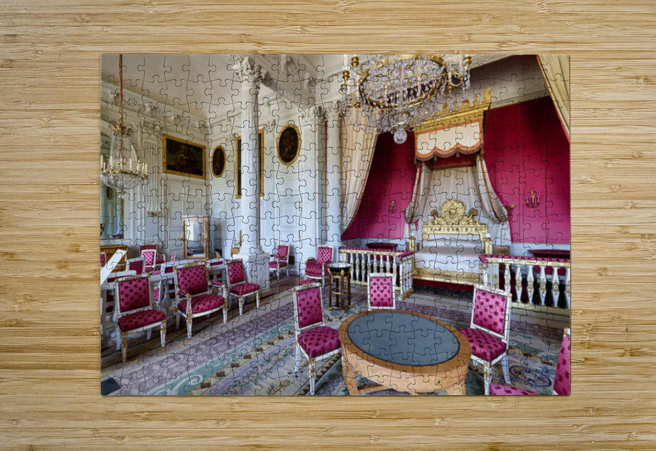Visitors admire the interior of the Grand Trianon a historic building in the Palace of Versailles Paris during a guided tour.