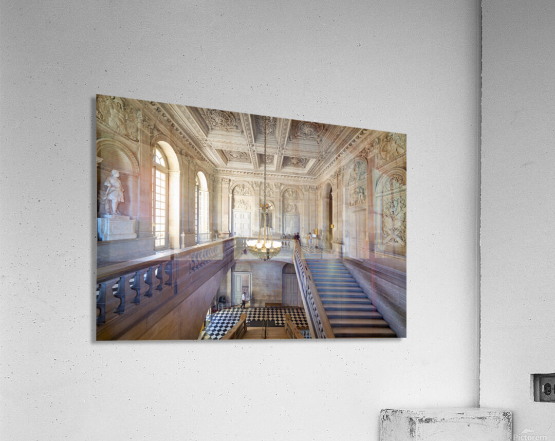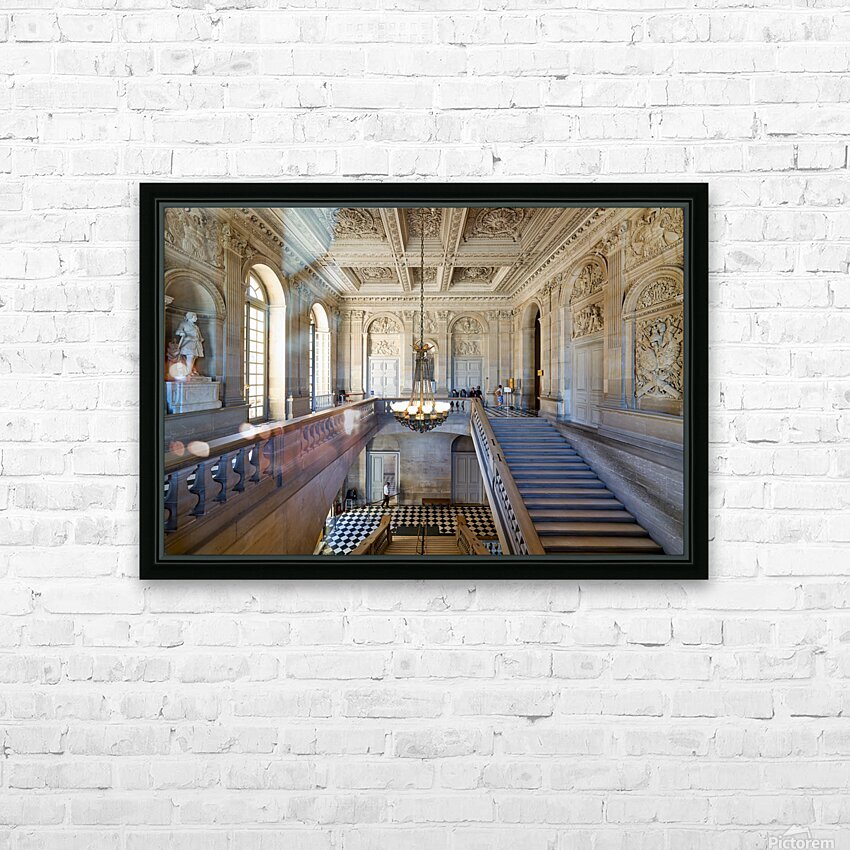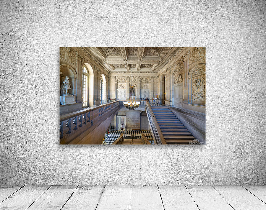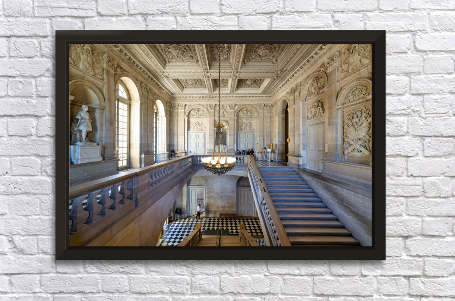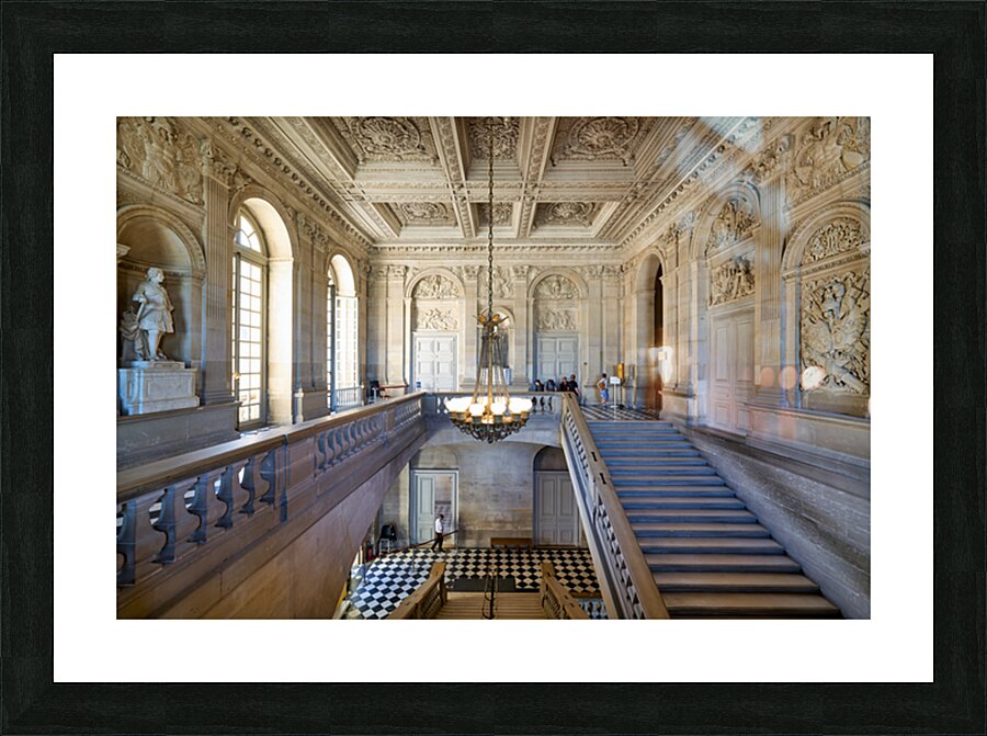"Visitors explore interior of Palace of Versailles in Paris Franc" in a framed print.