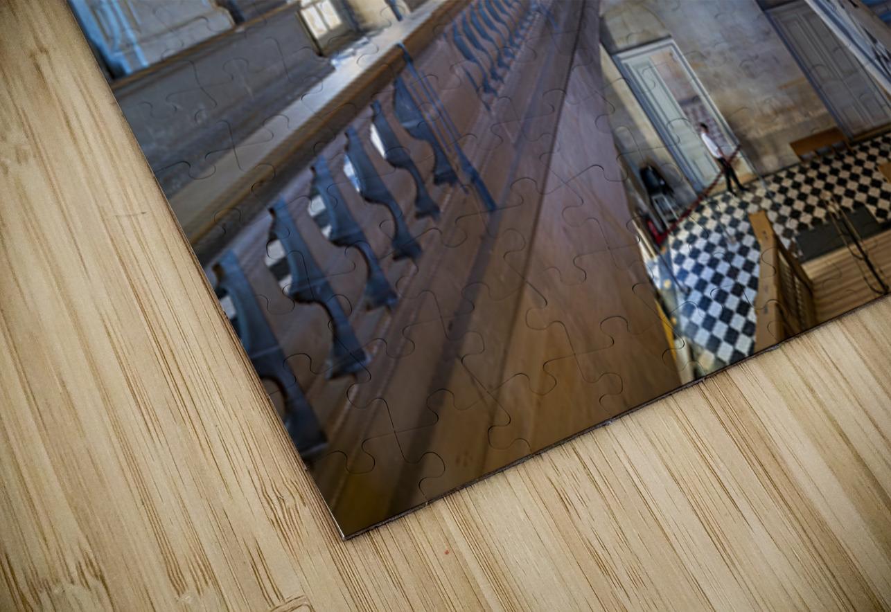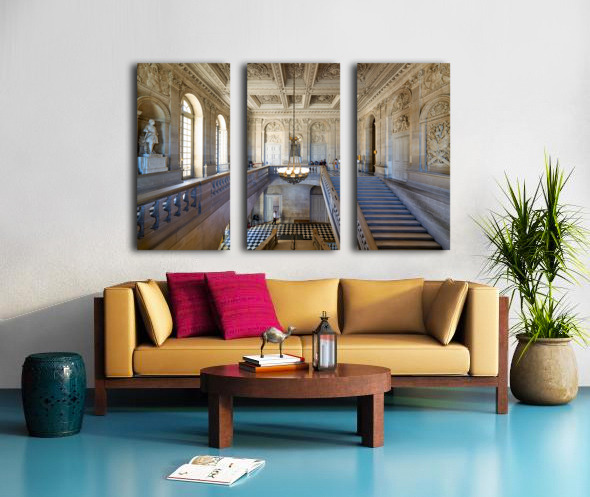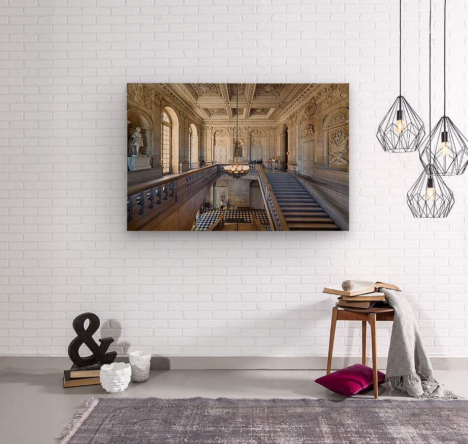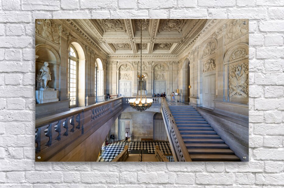 "Visitors explore interior of Palace of Versailles in Paris Franc" in a framed print.