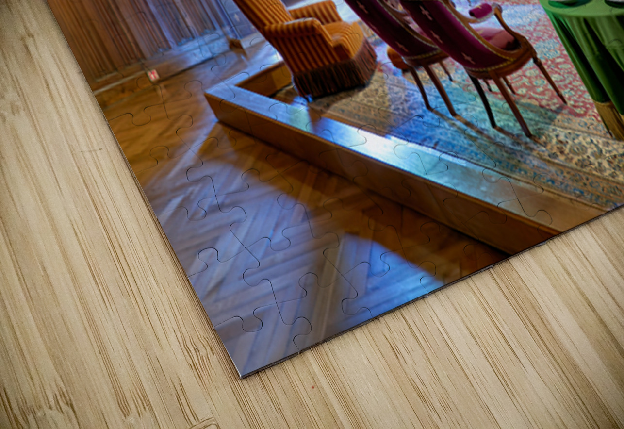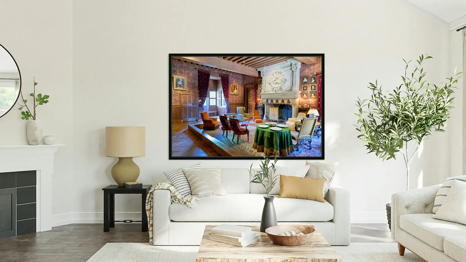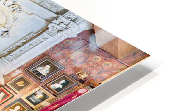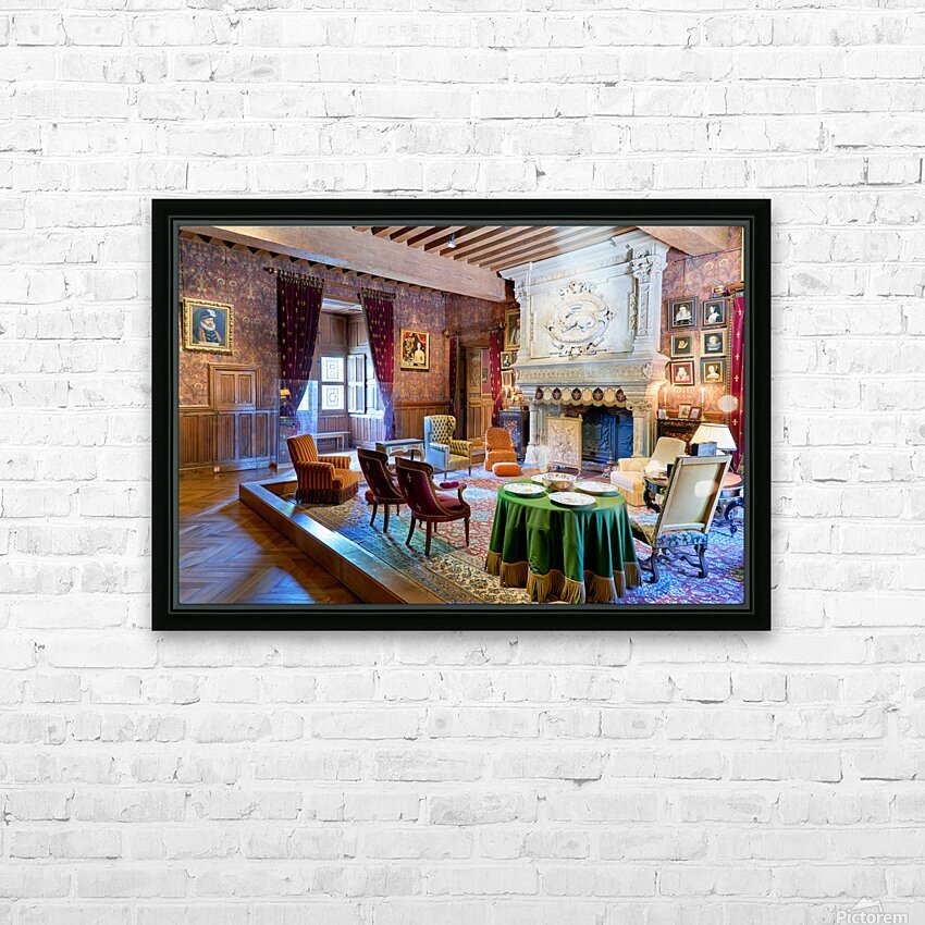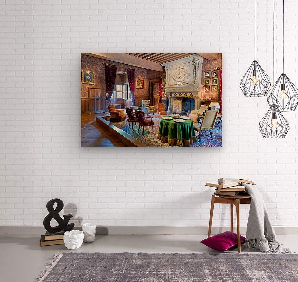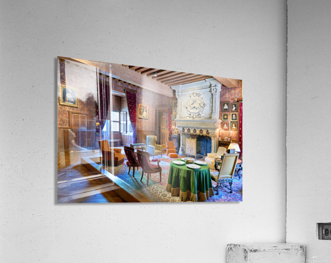Visitors explore the interior of Chateau dAzay le Rideau in the Loire Valley. The room shows unique decorations and historic furniture.