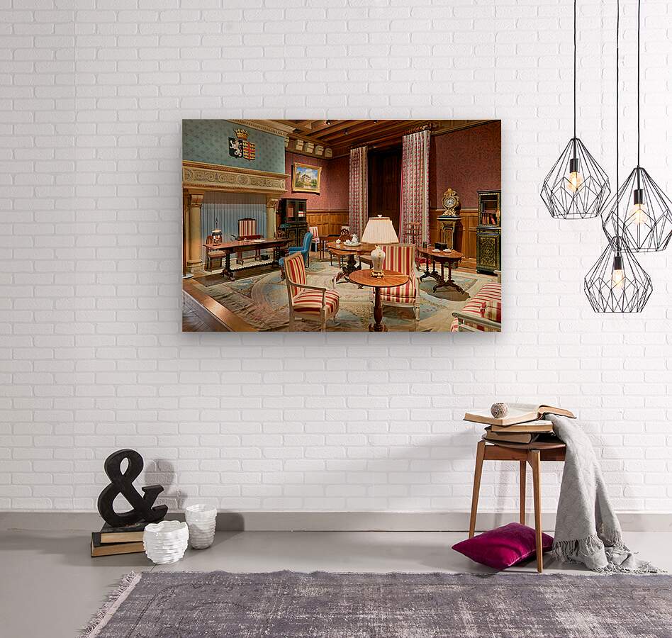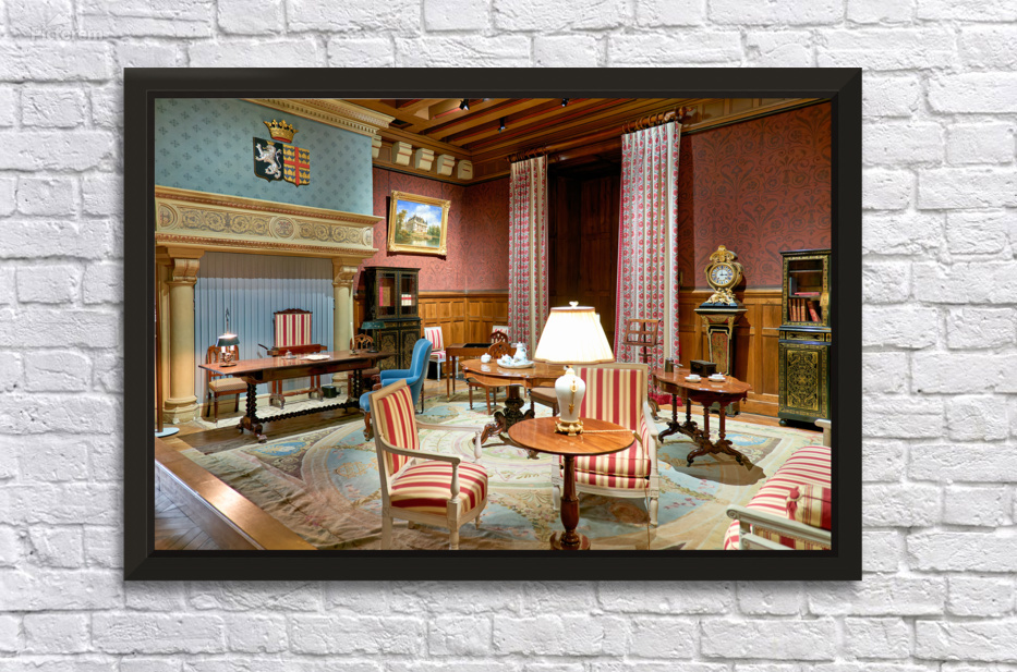 Visitors explore the interior of Chateau dAzay le Rideau in Loire Valley. They admire furniture and decorative details from different periods.