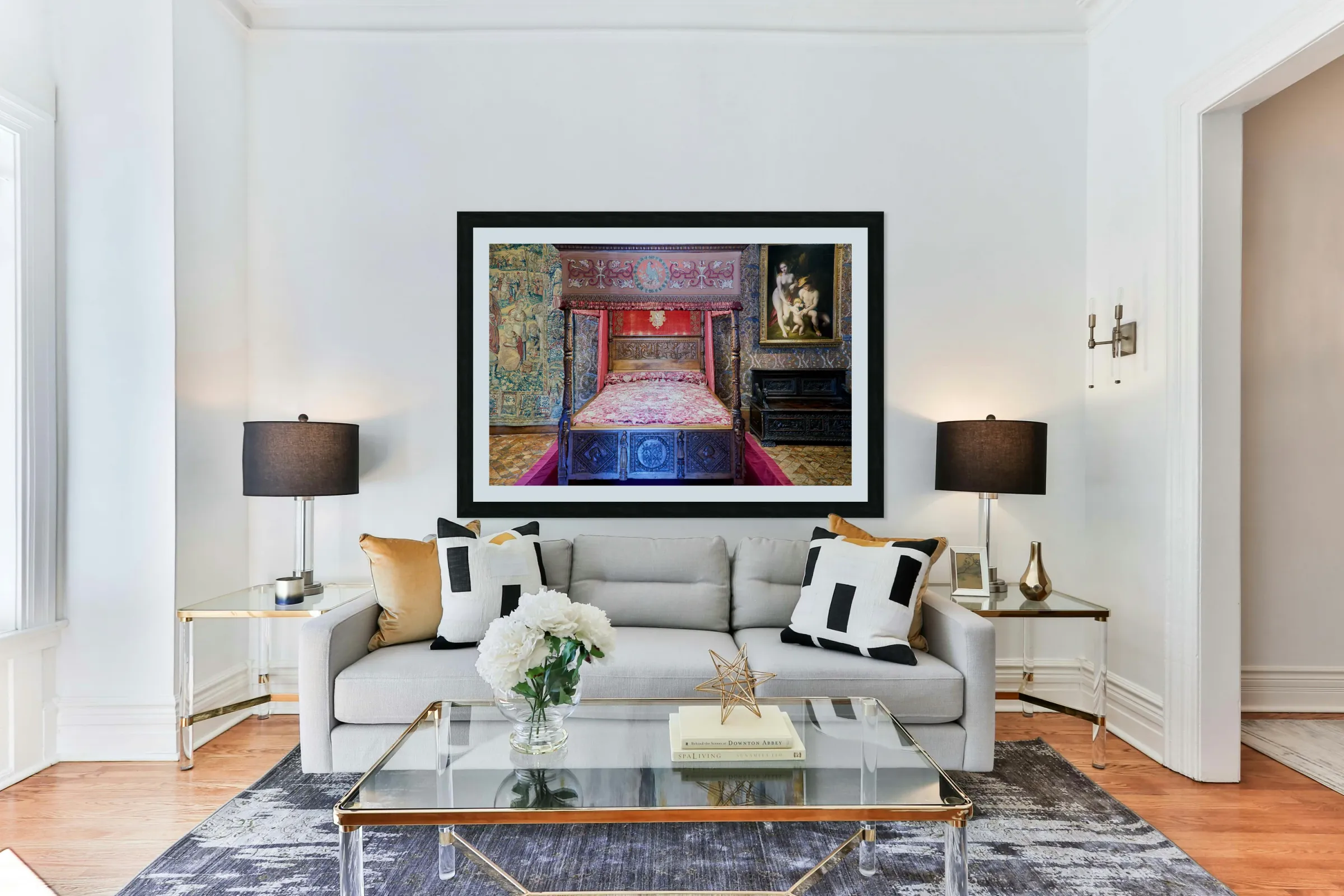 Historic bed in the Chateau de Chenonceau in France Picture Frame Printing