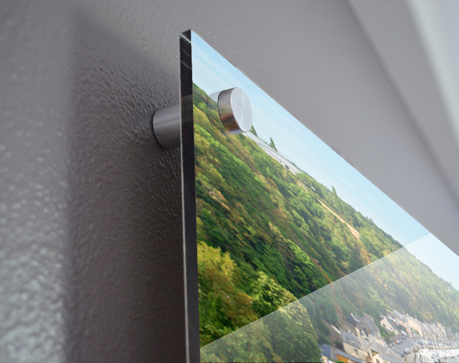 Printed to the edge - Ready to hang - provided with 4 premium polished aluminum stand off ( wall screws and mounting hardware provided )