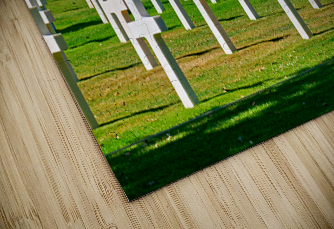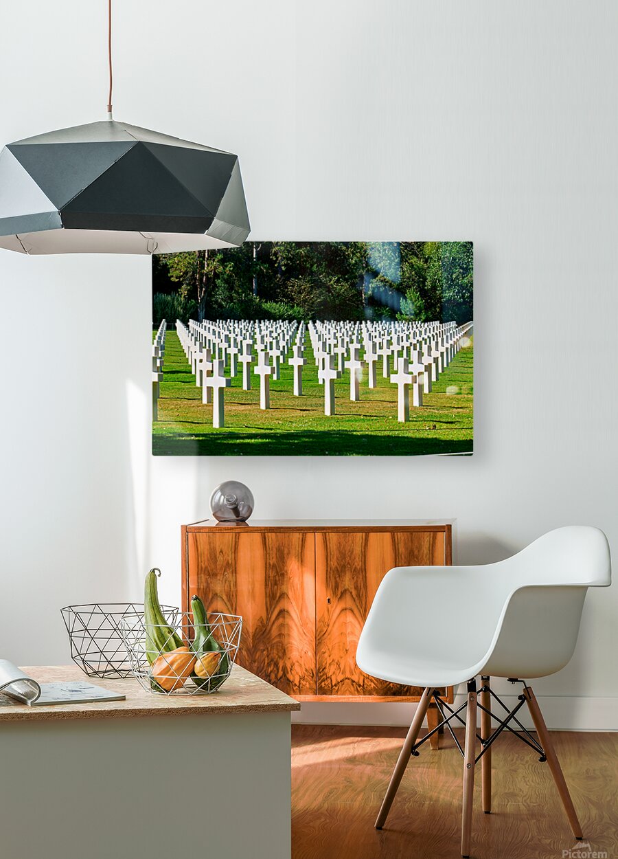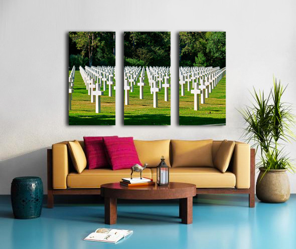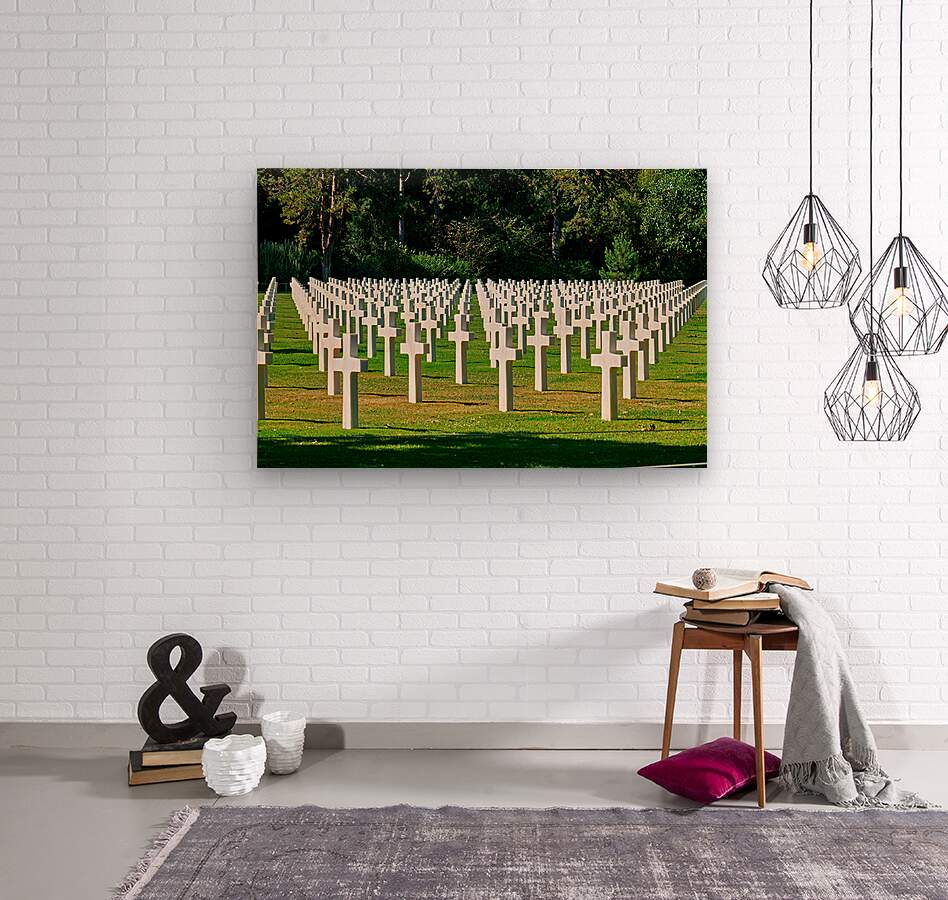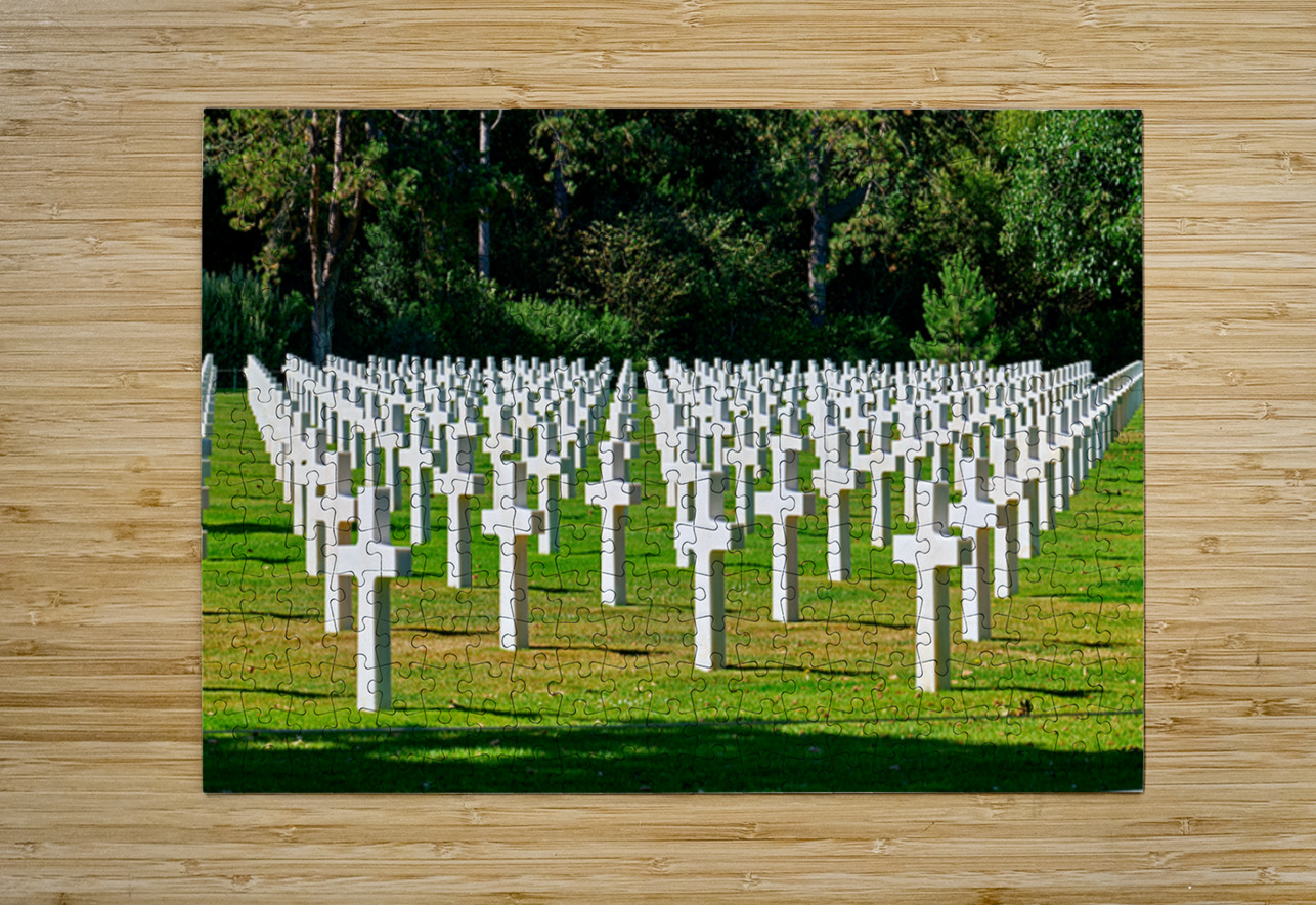 Grave markers stand in rows at Normandy American Cemetery in Colleville sur Mer honoring soldiers who fought in World War II.