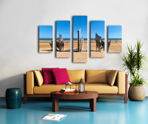Visit to Omaha Beach in Normandy France with memorial sculpture Frame print