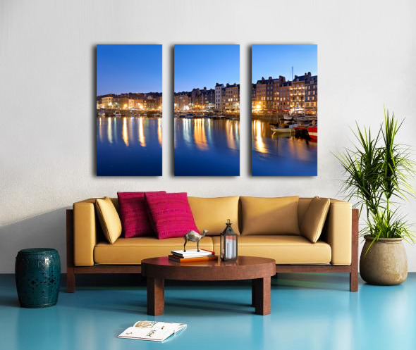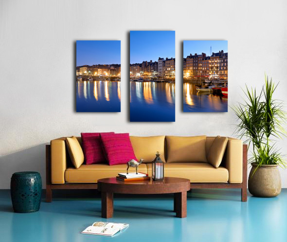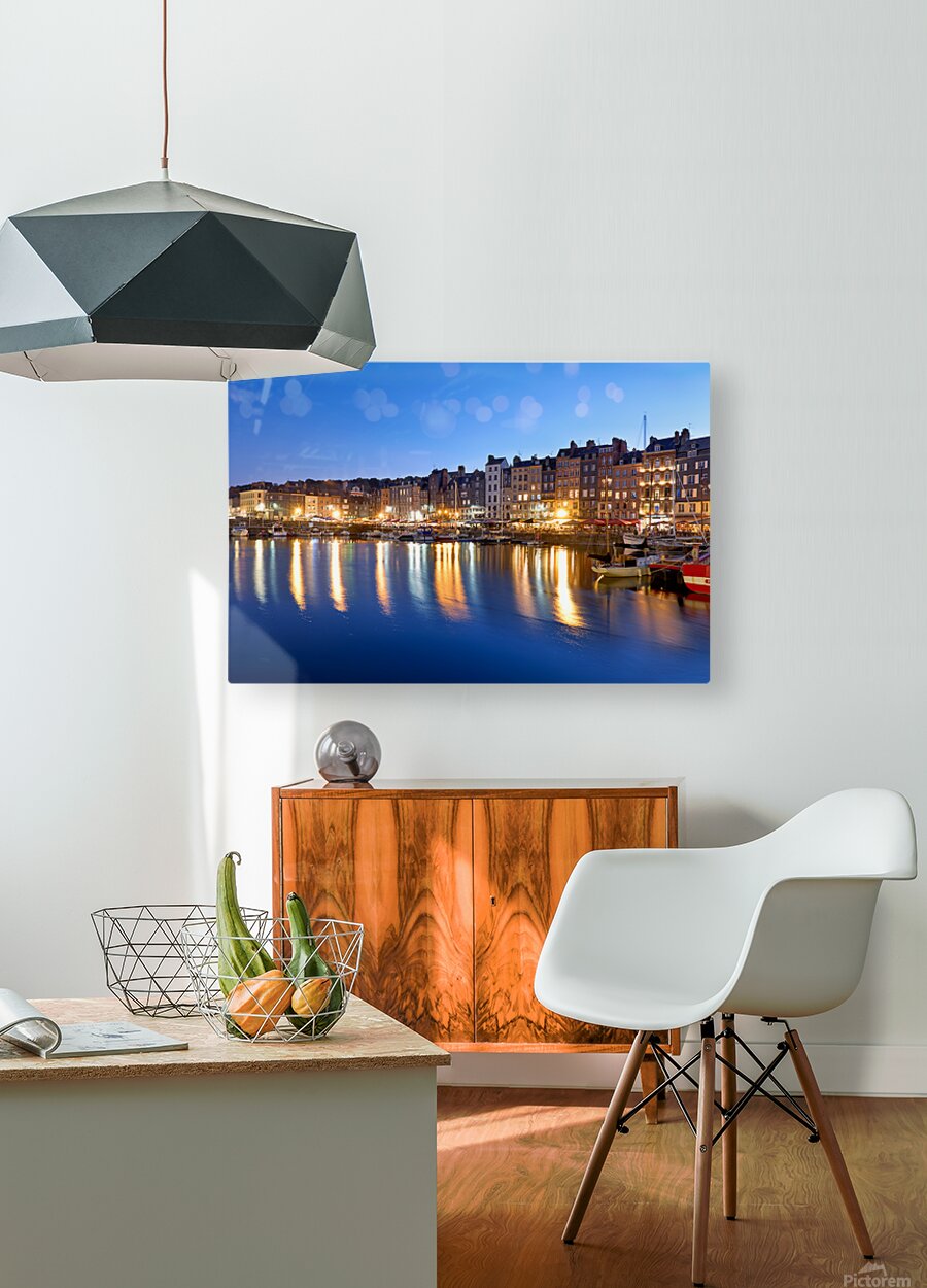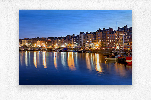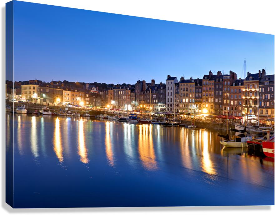 Harbour view of Honfleur at dusk with boats and buildings Picture Frame Printing