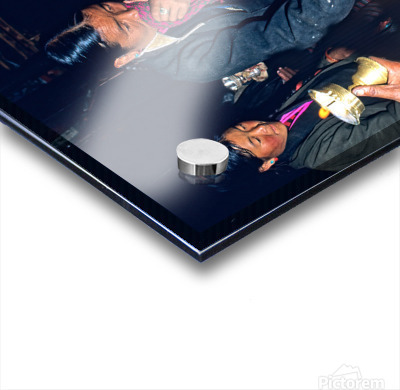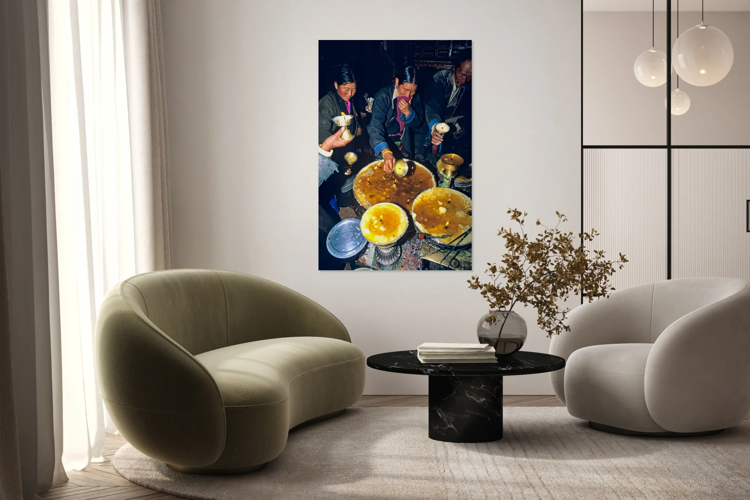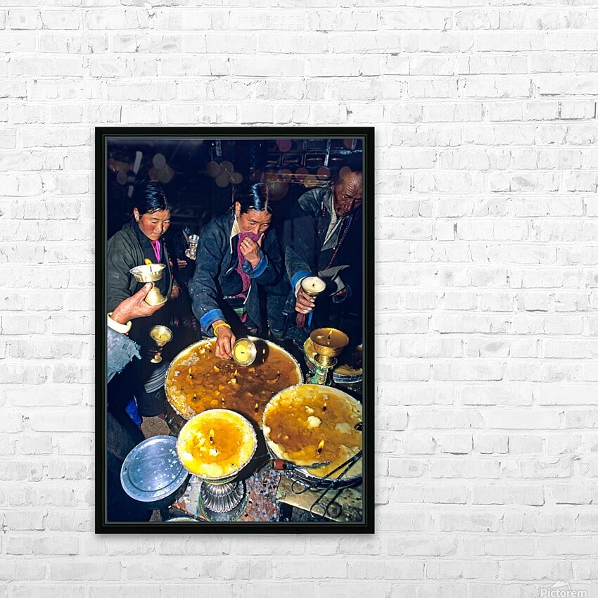 Lighting butter lamps during a ceremony in Tibet Frame print