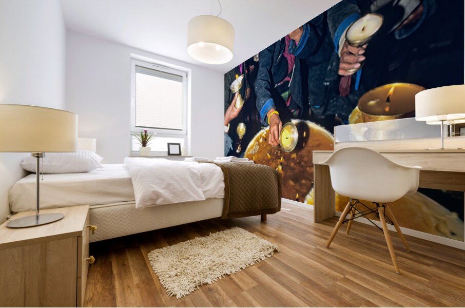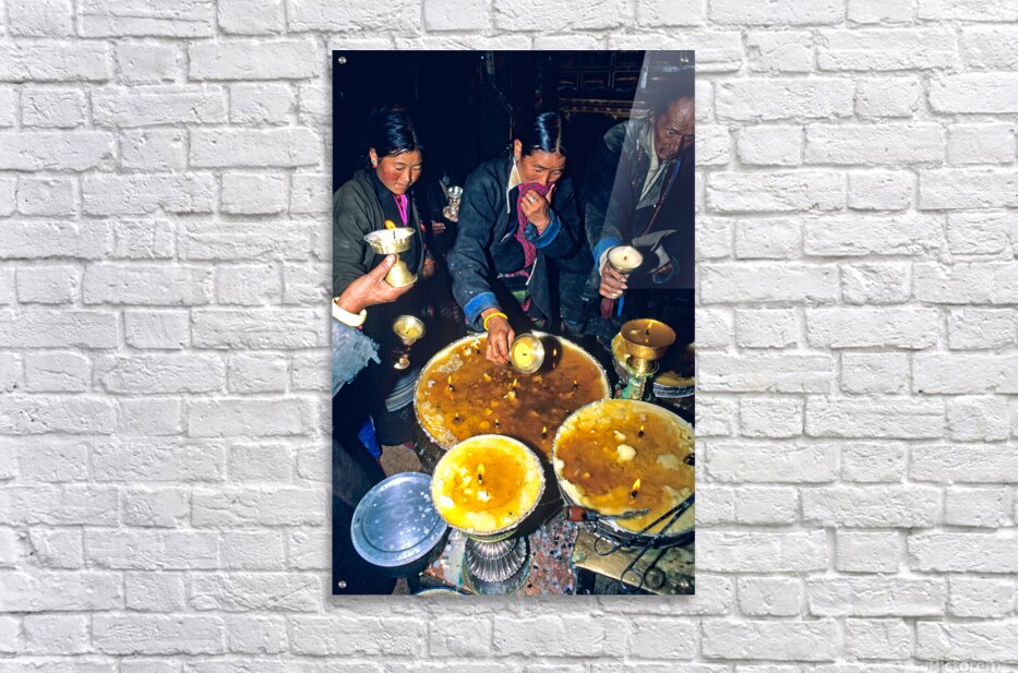 Get this artwork "Lighting butter lamps during a ceremony in Tibet" in a framed print.