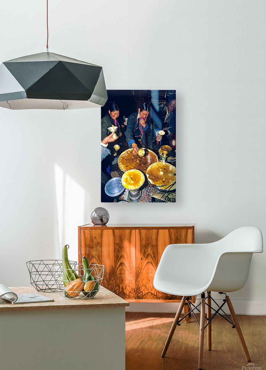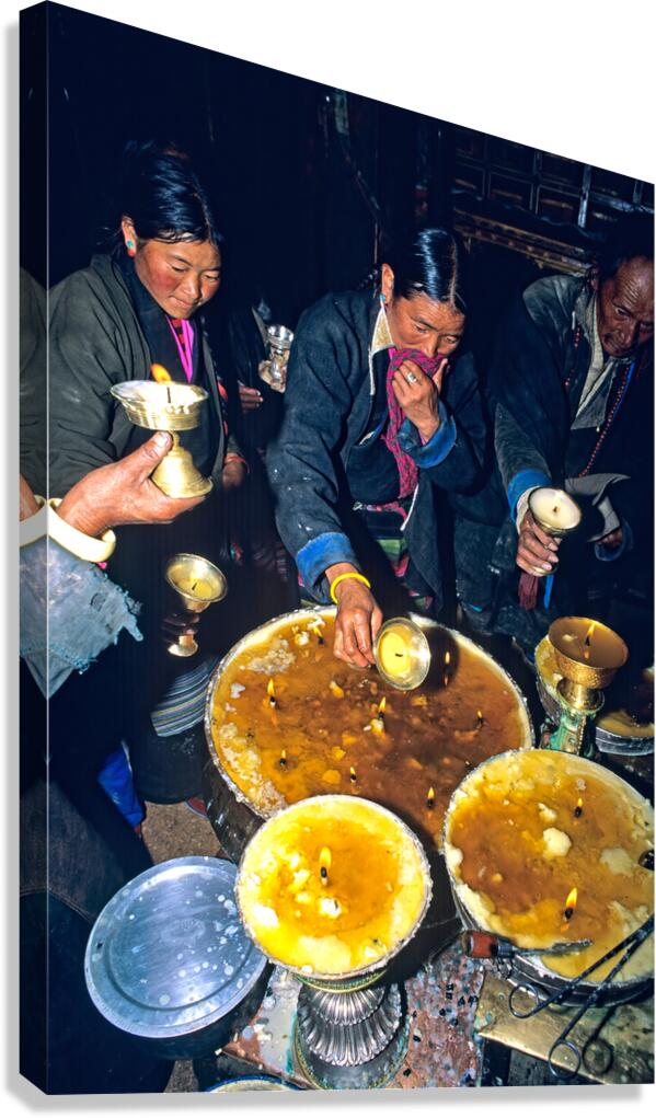 ABOUT THIS ARTWORK: LIGHTING BUTTER LAMPS DURING A CEREMONY IN TIBET