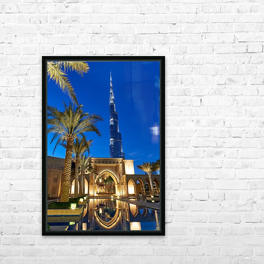 Burj Khalifa stands tall at night with light reflections in Duba Picture Frame Printing