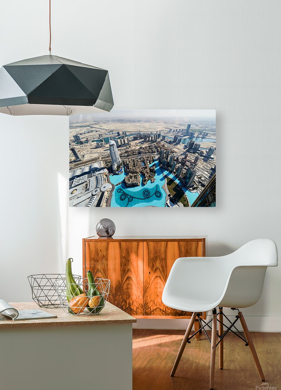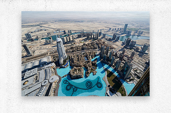 ABOUT THIS ARTWORK: SKYLINE VIEW OF DUBAI WITH SKYSCRAPERS AND ARTIFICIAL LAKE
