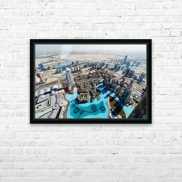 Skyline view of Dubai with skyscrapers and artificial lake Frame print