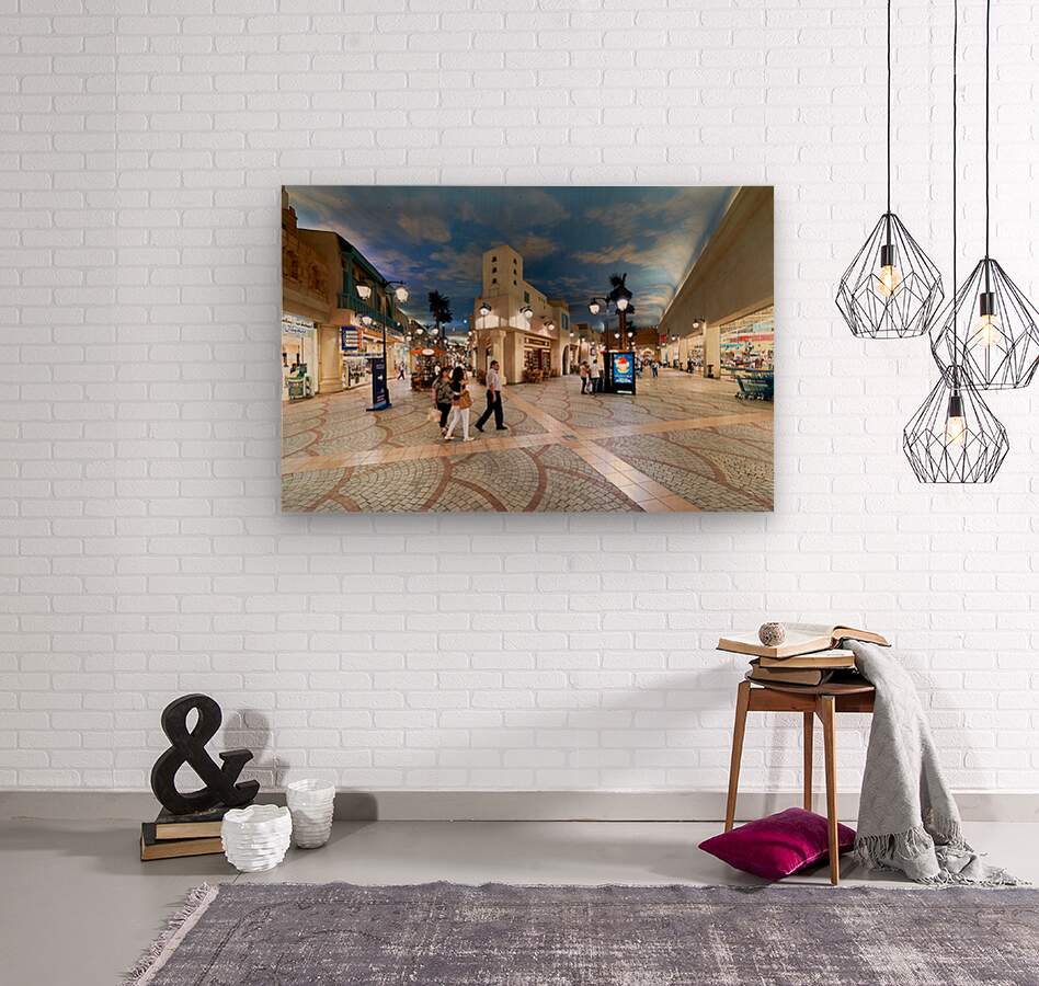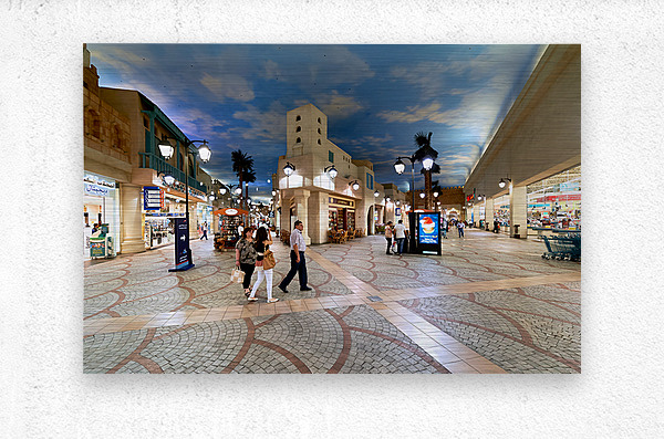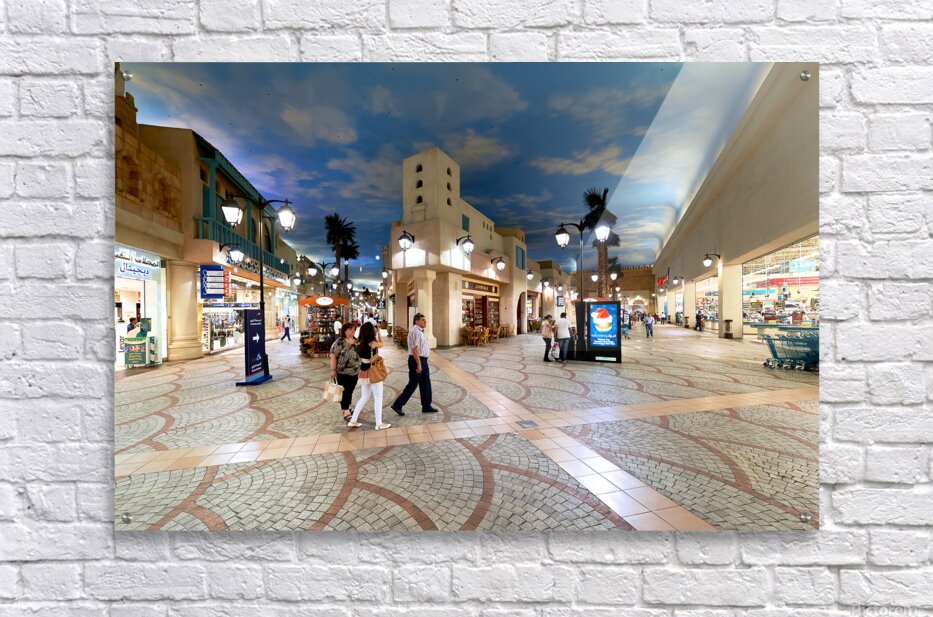 ABOUT THIS ARTWORK: SHOPPERS STROLL THROUGH A MALL MIMICKING DUBAIS OUTDOOR STREETS